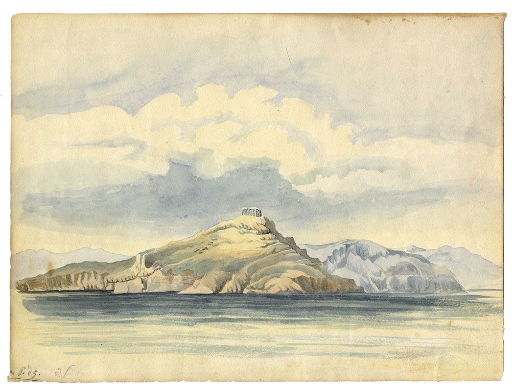 Acquerello e matita su carta. mm 230x310. Siglato in basso a sinistra. Iscrizioni varie a matita al verso.
