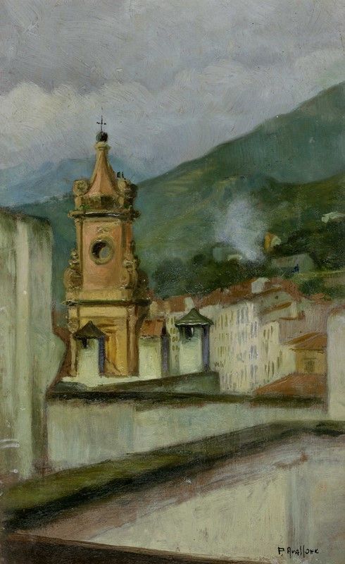 Olio su cartone. cm 29,5x18. Firmato in basso a destra, controfirmato e datato 1901 al
