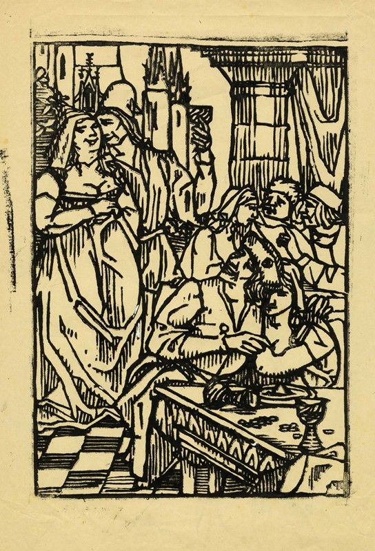 Xilografia su carta sottile. mm 165x108. SI AGGIUNGE: 2) Senza titolo. mm 283x196. Foglio: mm 353x240. Probabile prova di stampa, come testimoniano l'inchiostro al margine sinistro e tre piccoli fori in lastra che ricalcano il disegno. Provenienza: Atelier Bernard, del quale è riportato il timbro al verso.
