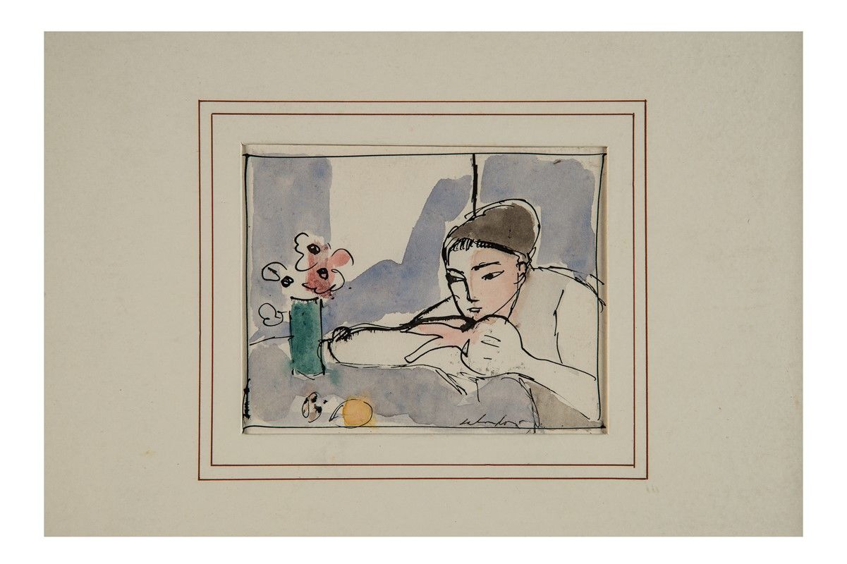 Acquerello, penna e inchiostro di china su carta. mm 120x150 (visibili). Firma a penna a sfera nera in basso a destra. Provenienza: Gallerita, Milano, di cui è presente il timbro al verso.