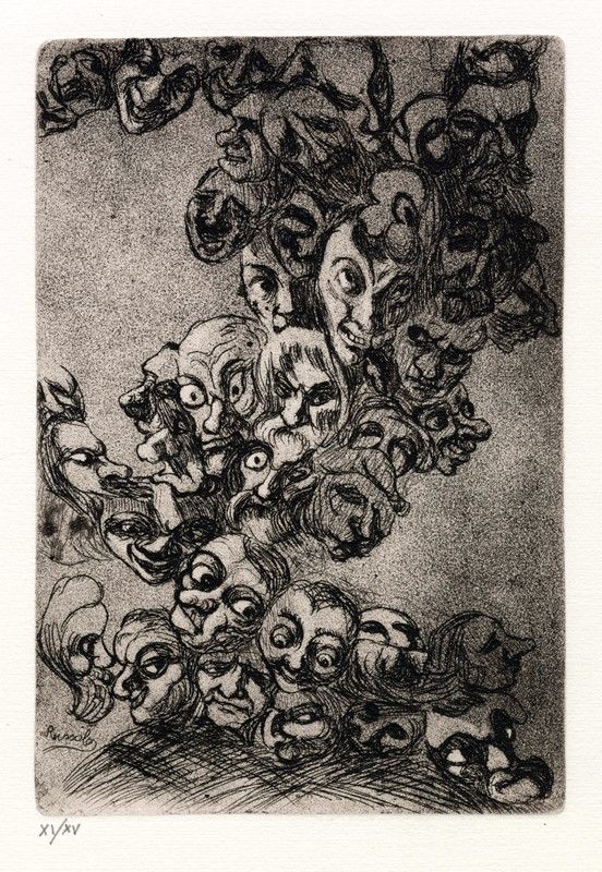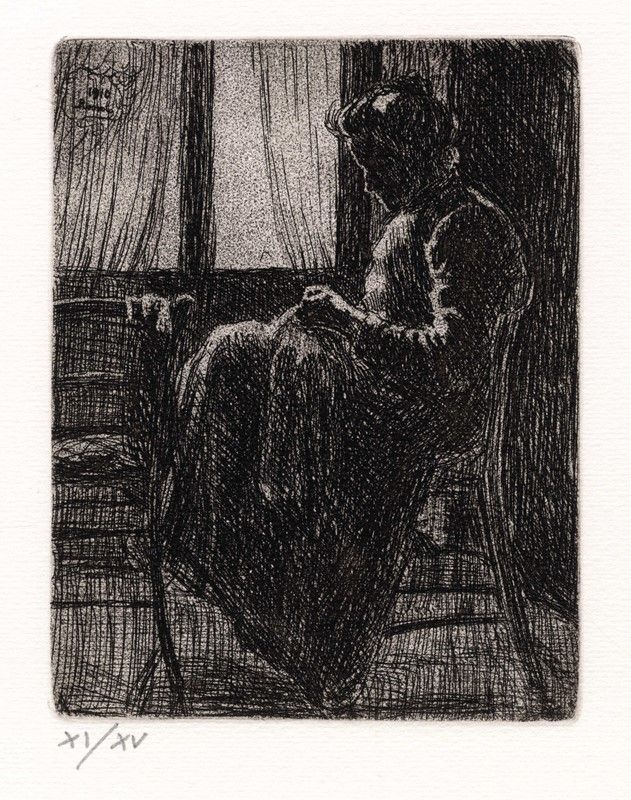 Città addormentata, Maschere, Chioma, Donna che cuce, Donna con cappello e Mattino. Incisioni all'acquaforte. mm 135/250x100/250. Fogli: mm 500x350 cad. Tutte numerate a matita a numeri romani in basso a sinistra e molte firmate in lastra. Ristampa delle Edizioni Ceal curata da Franco Maffina, del quale è presente la garanzia al verso di ogni foglio insieme ai dati di ogni opera. Le lastre di queste opere sono state realizzate tra il 1909 e il 1911.