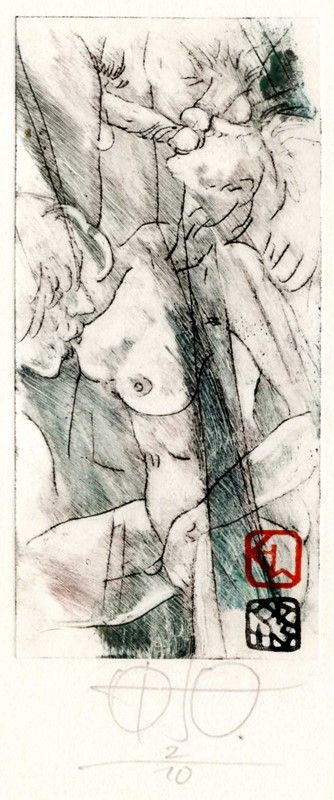 Acqueforti a colori. Misure varie. Tutti firmati a matita in basso e alcuni riportano la tiratura, molto bassa. Alcuni sono l'esemplare 2/10. Alcuni riportano il timbro xilografico dell'artista in lastra.