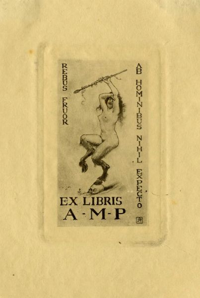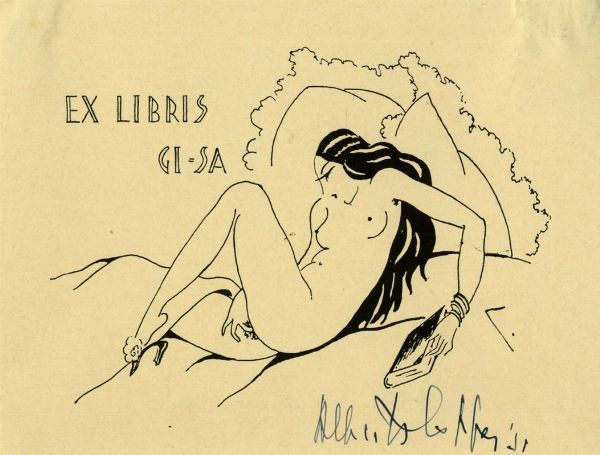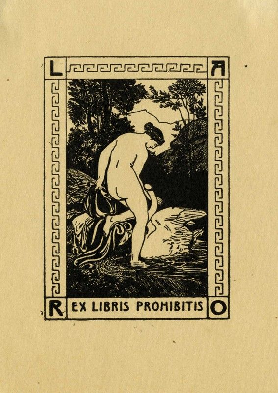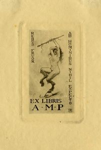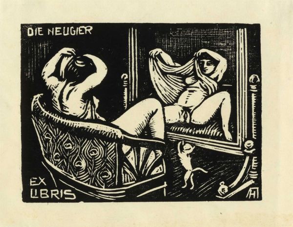 Raccolta di 14 ex libris tra acqueforti, litografie, xilografie e fotoriproduzioni. mm 75/120x40/120. Fogli: mm 165/95x135/90. Un'opera firmata a matita in basso a destra, altre 11 firmate in lastra. Un'opera datata 1912.