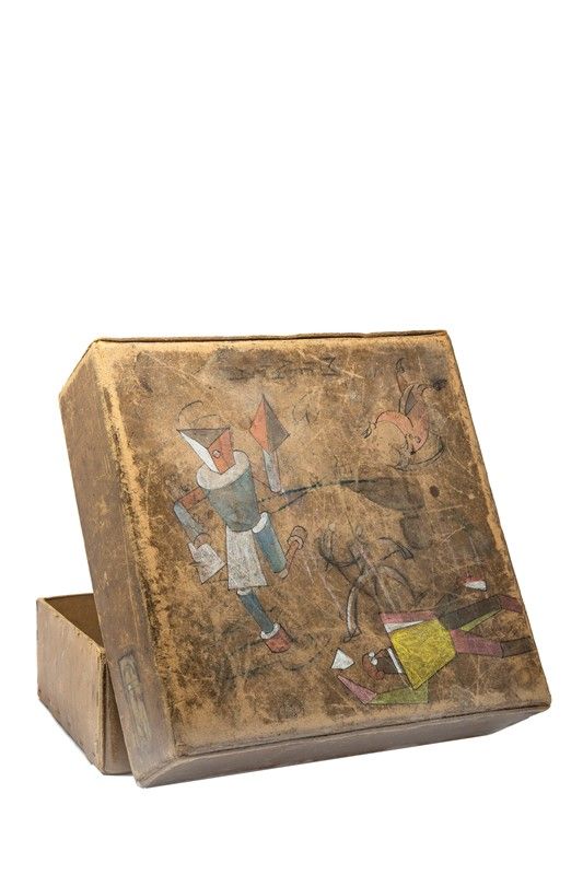 Pastello grasso, matita, carboncino e penna e inchiostro di china su scatola di cartone. cm 32x31,5x10. Titolo a uno dei margini. Il soggetto del Ballo meccanico futurista interessa l'artista tanto da dedicare al tema parecchie opere. Ivo Pannaggi, nel 1922, si iscrisse alla Scuola di Architettura e con Vinicio Paladini scrisse il Manifesto dell'Arte Meccanica Futurista. Uno dei manichini rappresentato sulla scatola è studiato più volte dall'artista, si veda il II Bozzetto per il costume per il Ballo meccanico futurista del 1922 esposto alla mostra La trottola e il robot al PALP Palazzo Pretorio di Pontedera (11 novembre 2017-22 aprile 2018) e Robot Futuriste passato in asta da Hôtel des Ventes de Monte-Carlo nell'ottobre del 2022.