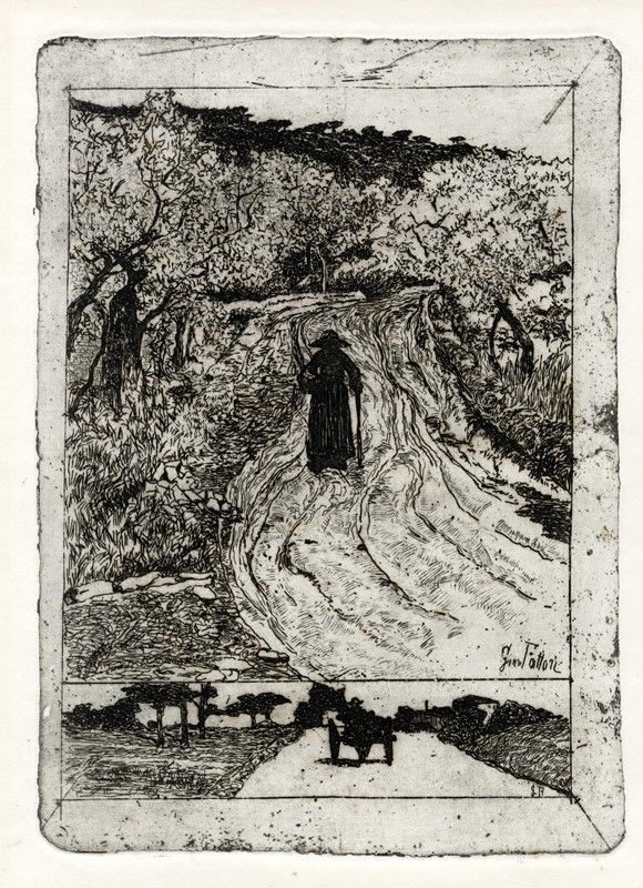 Acquaforte su zinco. mm 270x197. baboni-malesci, cxl. Firma in lastra in basso a destra. Esemplare in tiratura coeva con iscrizioni di Mario Galli a matita al margine inferiore. Provenienza: Collezione Mario Galli.