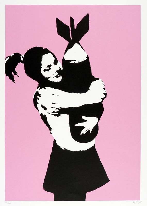 Serigrafia da un'opera di Banksy. mm 655x455. Foglio: mm 700x500. In basso a sinistra timbro a secco con un missile, sopra la tiratura a matita, in basso a destra iscritto: "Banksy". Es. 12/60.