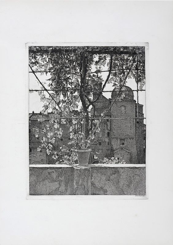 1) Veduta I. Acquaforte e bulino. Inciso: mm 422x319. Lastra: mm 442x337. Foglio: mm 696x495. bellini-alberti, 42. Firma in lastra in basso a destra. 2) Veduta II. Acquaforte e bulino. Inciso: 403x310. Lastra: mm 442x330. Foglio: mm 696x495. bellini-alberti, 43. Firma in lastra in basso a destra. Provenienza per entrambi i fogli: Eredi Disertori.