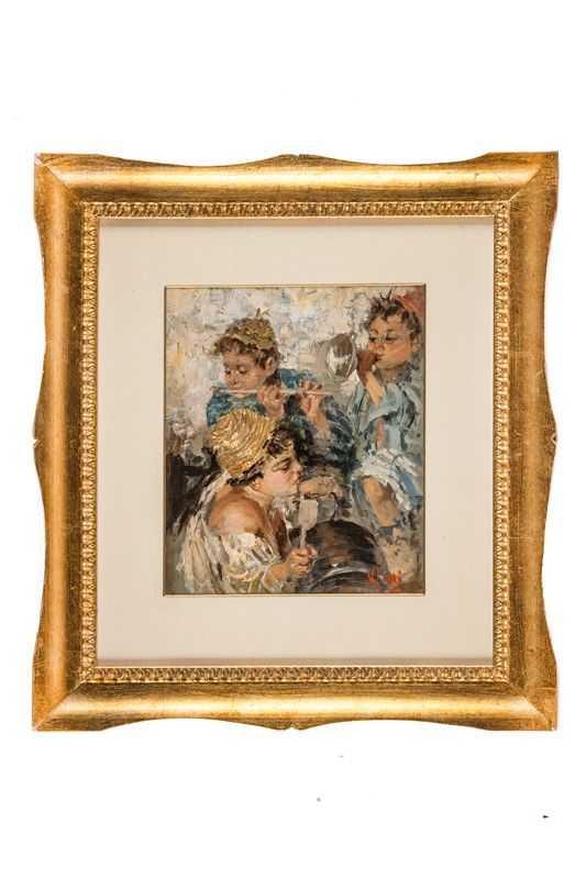 Olio su tavoletta. cm 27x21. Firmato in basso a destra.