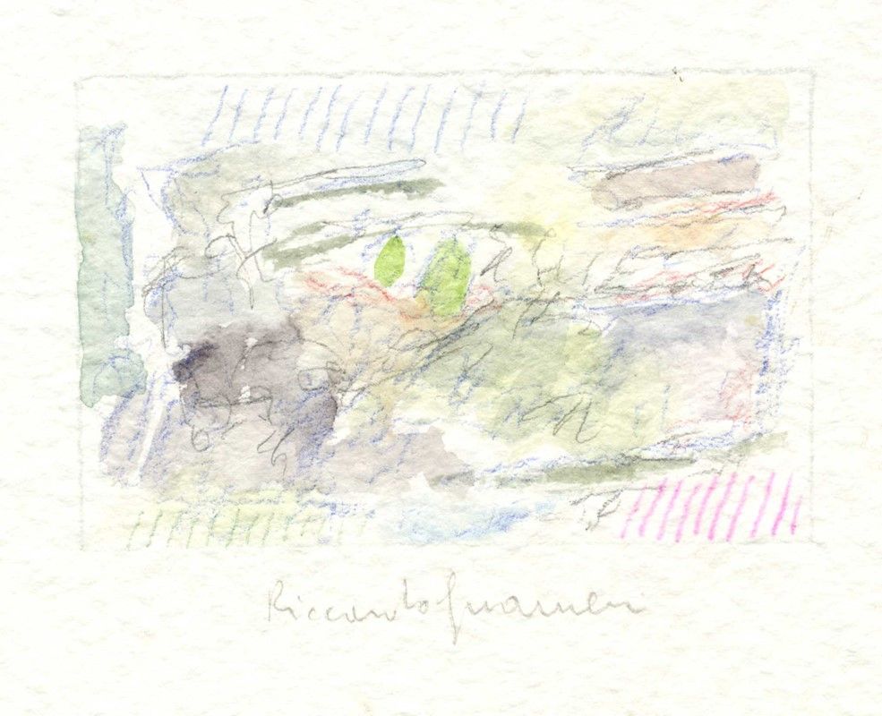 Acquerello, pastello e matita su carta greve. mm 70x110. Foglio: mm 350x250. Firmato in basso al centro.