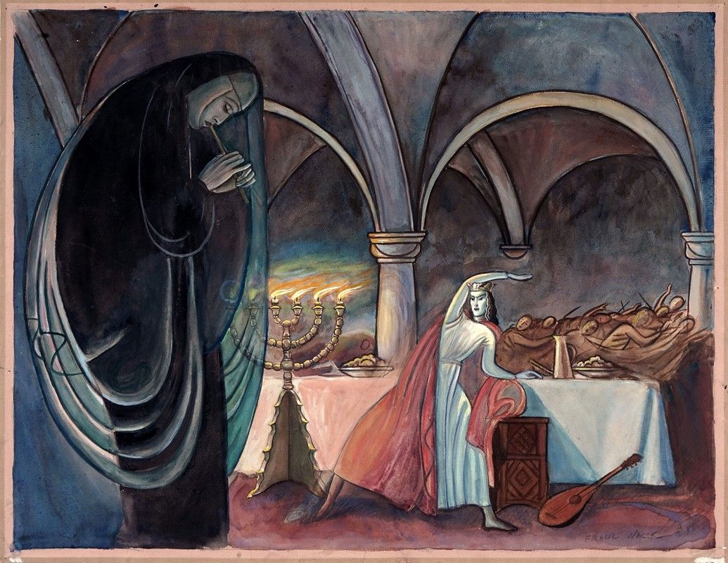 Acquerello su carta greve. mm 505x615. Firma a matita in basso a destra.