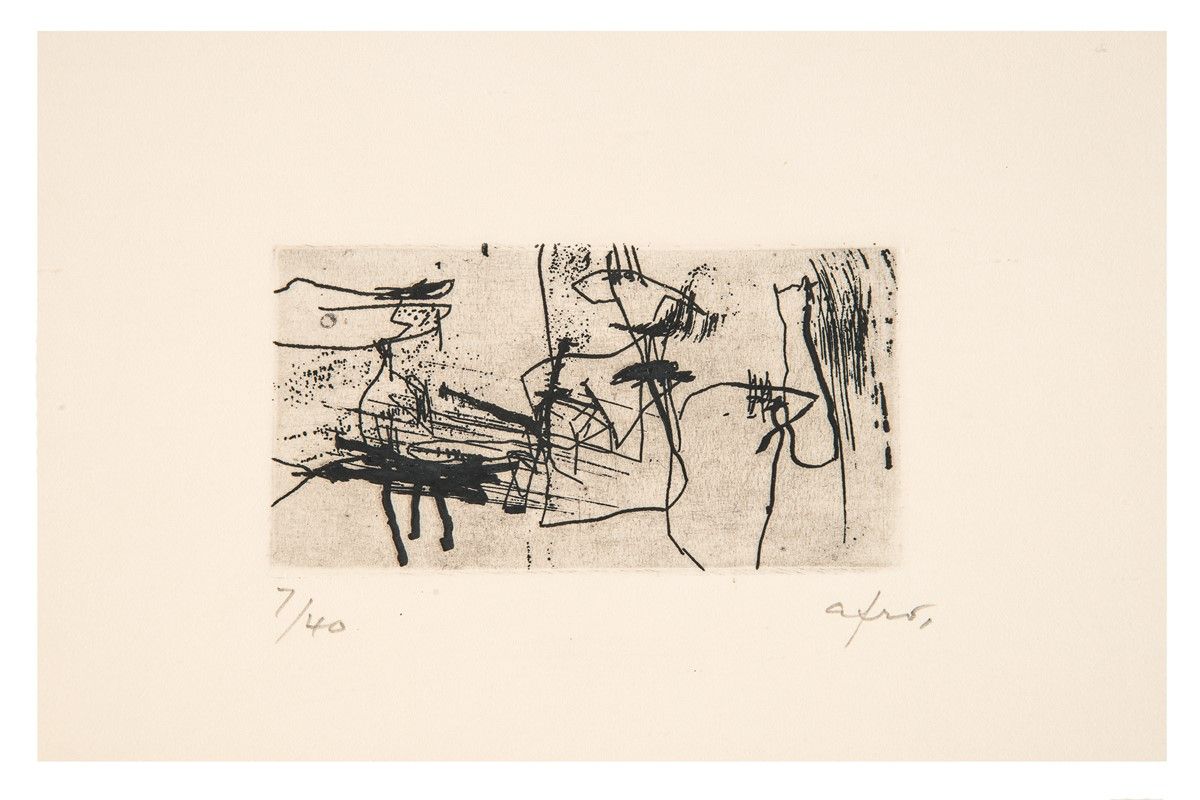 Acquaforte. mm 75x150. Foglio: mm 350x490. Firma a matita in basso a destra e tiratura in basso a sinistra. Timbro a secco in basso a sinistra. Es. 7/40.