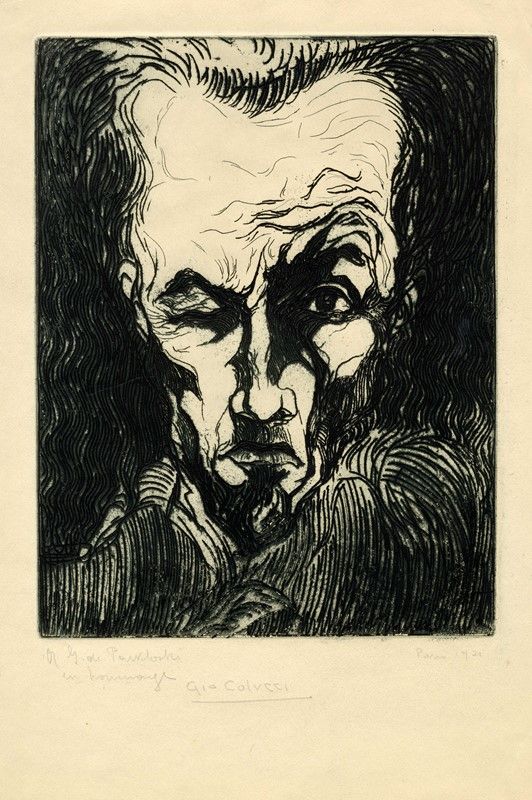Acquaforte. mm 295x225. Foglio: mm 410x270. Firmata in basso al centro, datata in basso a destra e dedicata in basso a sinistra.