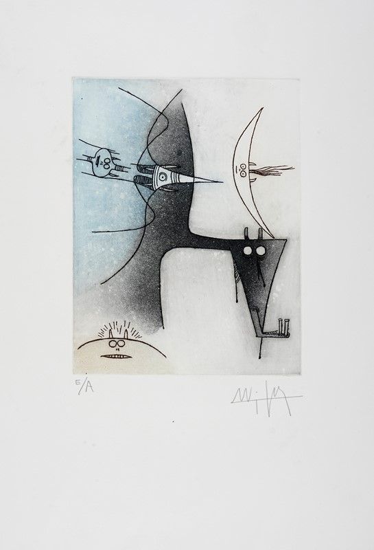 Acquatinta. mm 315x240. Foglio: mm 625x445. Firma a matita in basso a destra ed "E/A" in basso a sinistra.