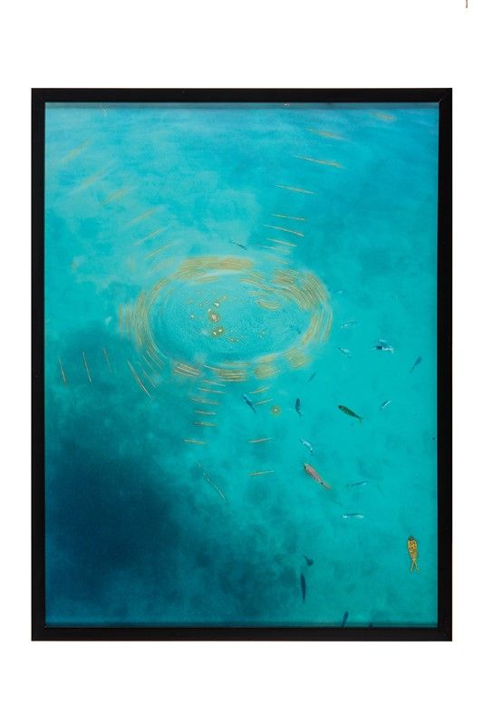 Tecnica mista su carta fotografica applicata a forex. cm 56x42. Firme, anno e titolo al verso del supporto. Opera proveniente dalla serie Aquae.