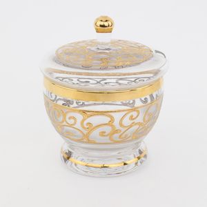 cm 12x8,7 decorata a mano in oro da composizioni floreali; coperchio con presa in forma di foglia tortile. Reca [..]