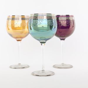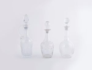 altezza cm 11 e cm 18 i primi impreziositi da orlo in metallo argentato, la bottiglia con sottile fascia dorat [..]