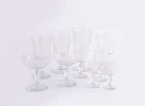 altezza da cm 8,5 a cm 15 decorati da ghirlande e festoni incisi, composto da sessantadue elementi così suddivisi: [..]