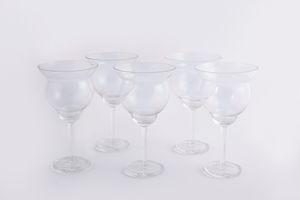 altezza cm 16,5 con coppa sagomata su esile stelo con piede circolare; due calici di misura lievemente inferio [..]