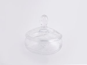 cm 16x16 di forma circolare schiacciata con tralci incisi e coperchio sormontato da pomolo sfaccettato