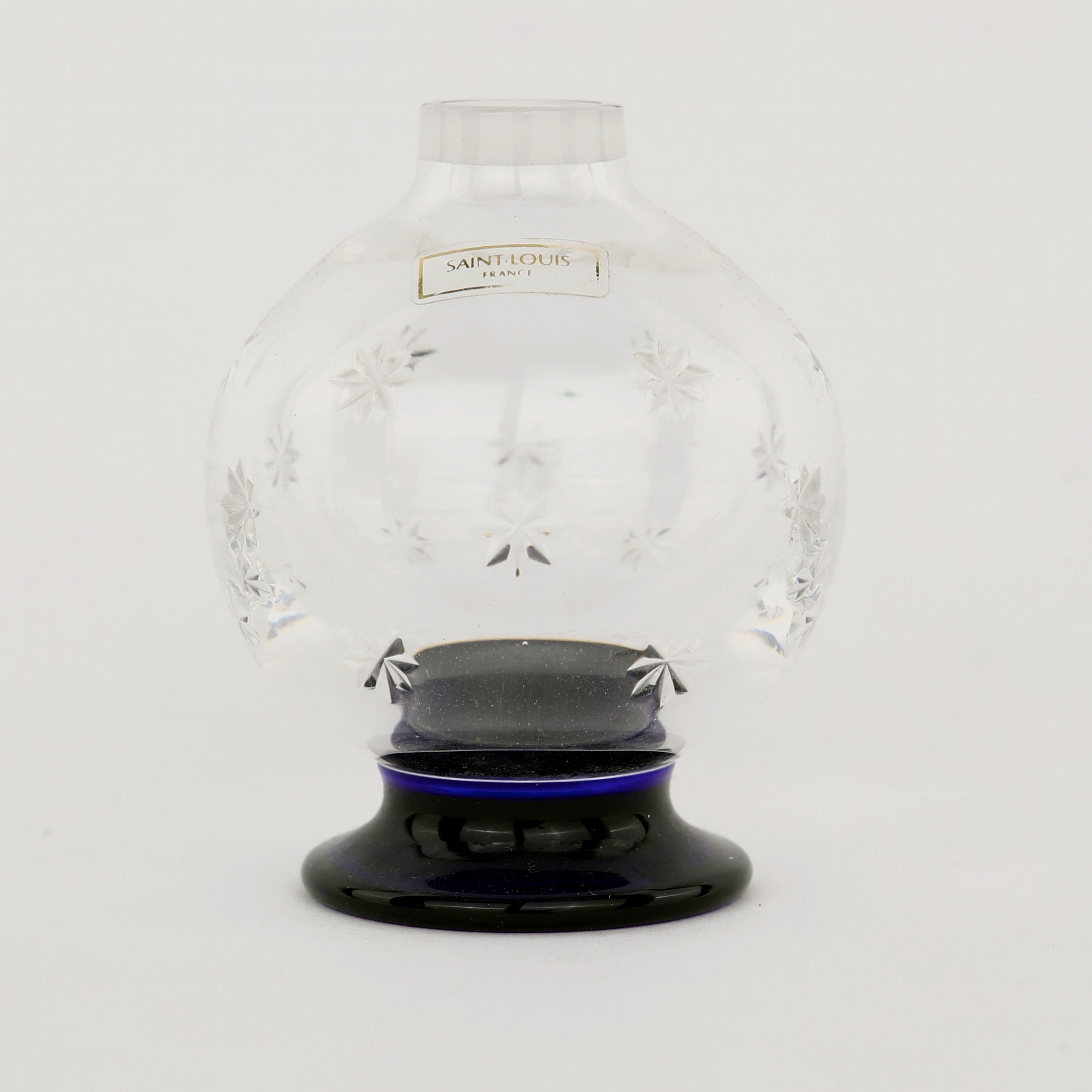 di forma sferica abbellita da piccole stelle incise; basso piede blu. Inciso sotto il piede: Cristal Saint Louis France