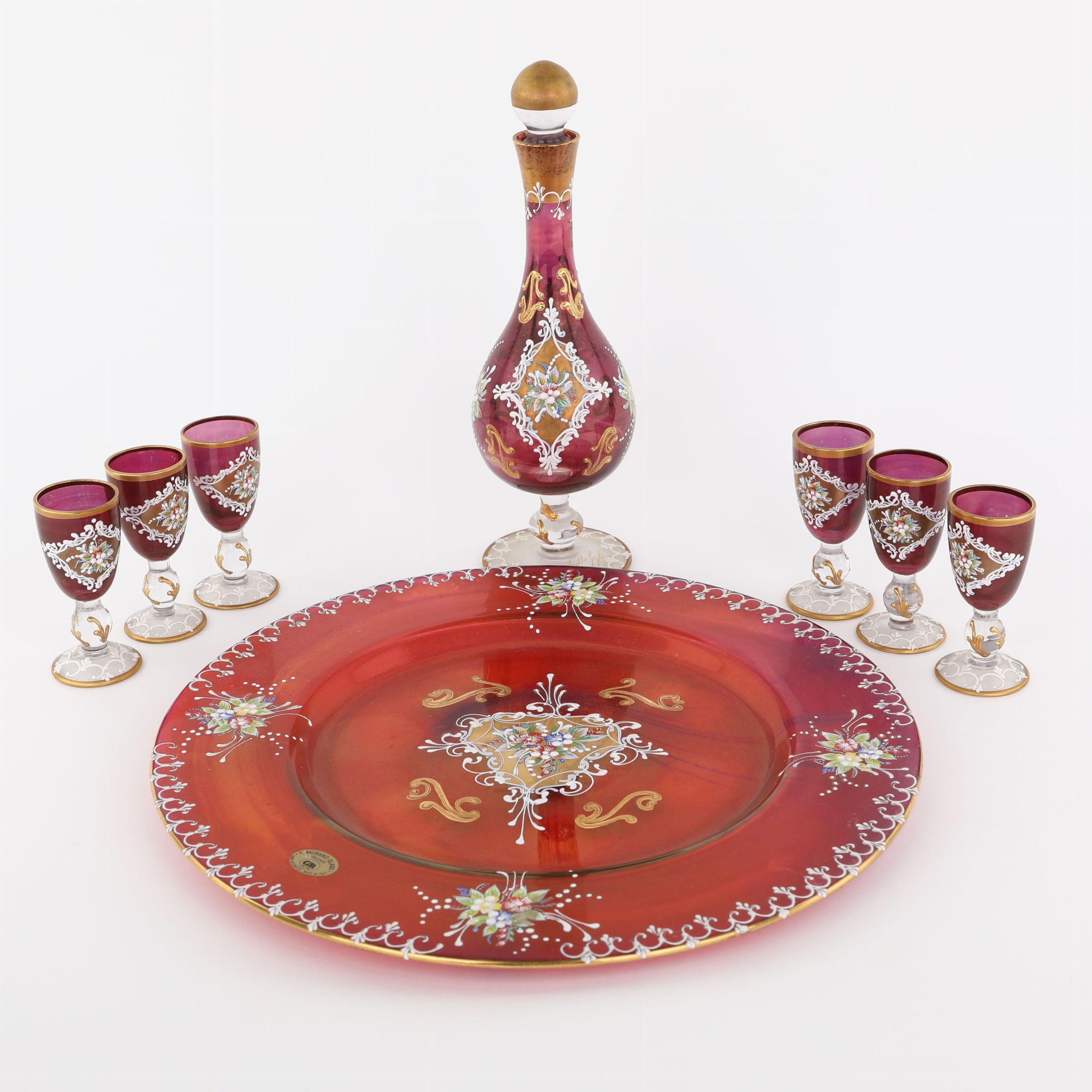Servizio da liquore in vetro rosso decorato a mano, Nello Gigli, Murano, metà del [..]