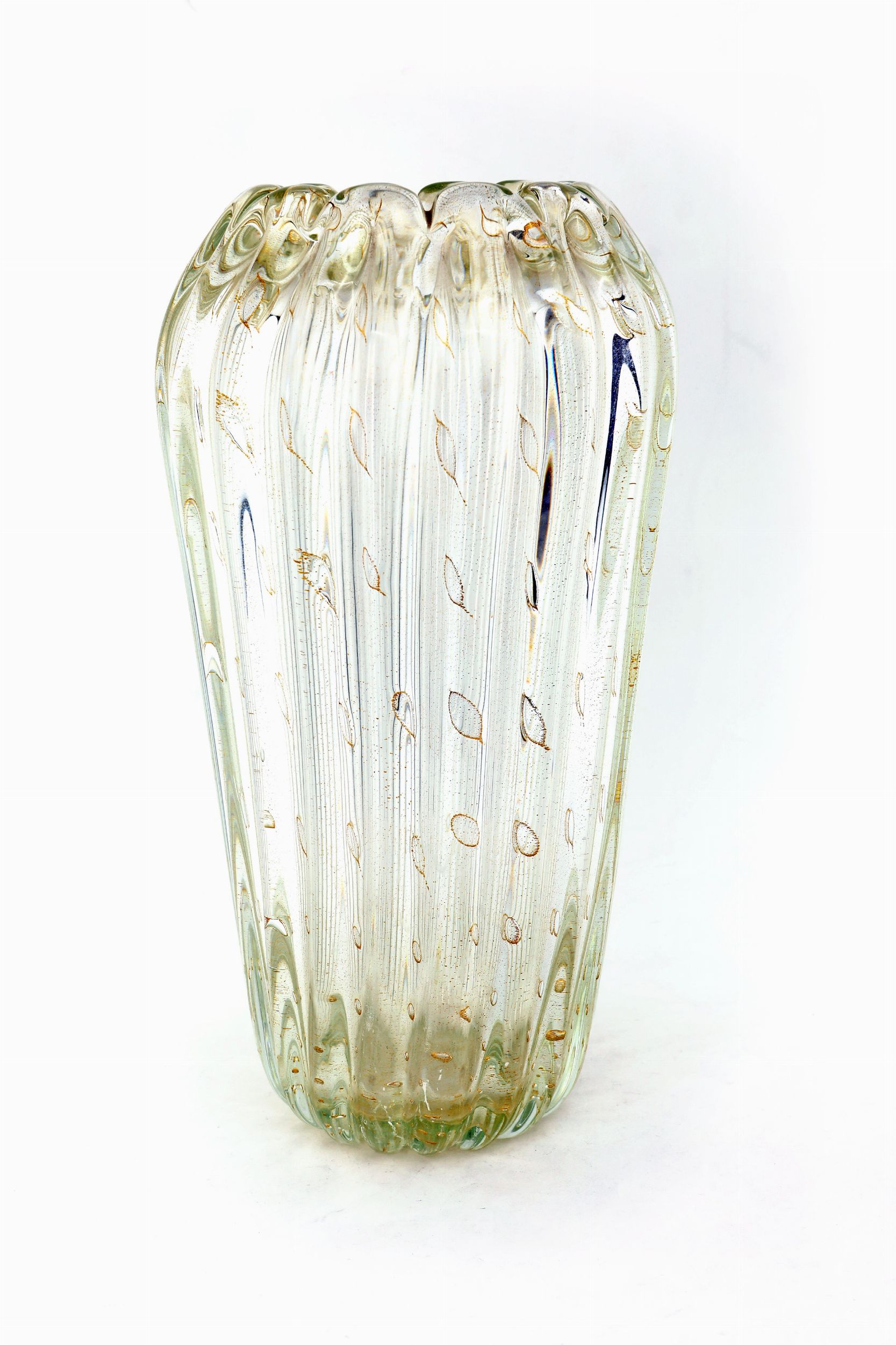 Vaso in vetro incolore con inclusioni dorate, arte vetraria muranese