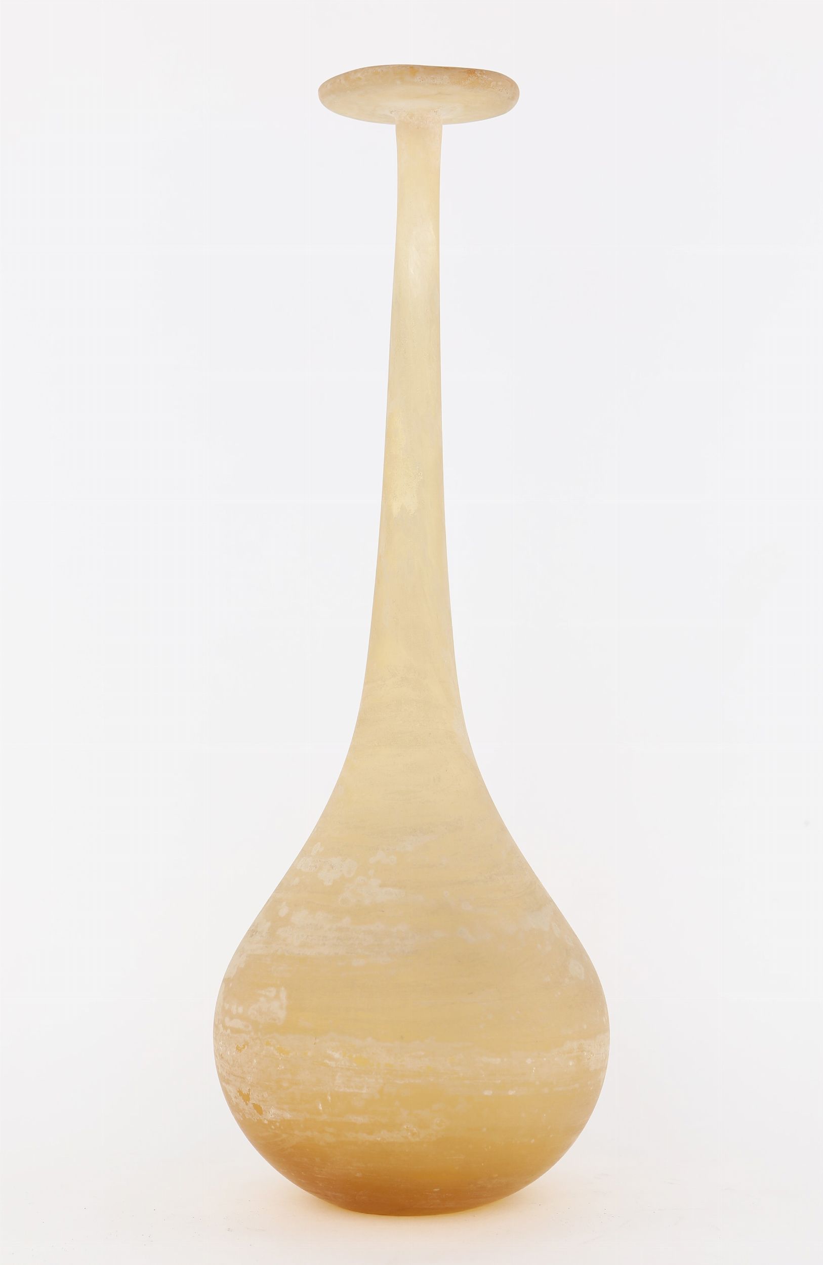 di forma sferica con lungo de esile collo terminante a disco. Iscritto La Murrina in basso