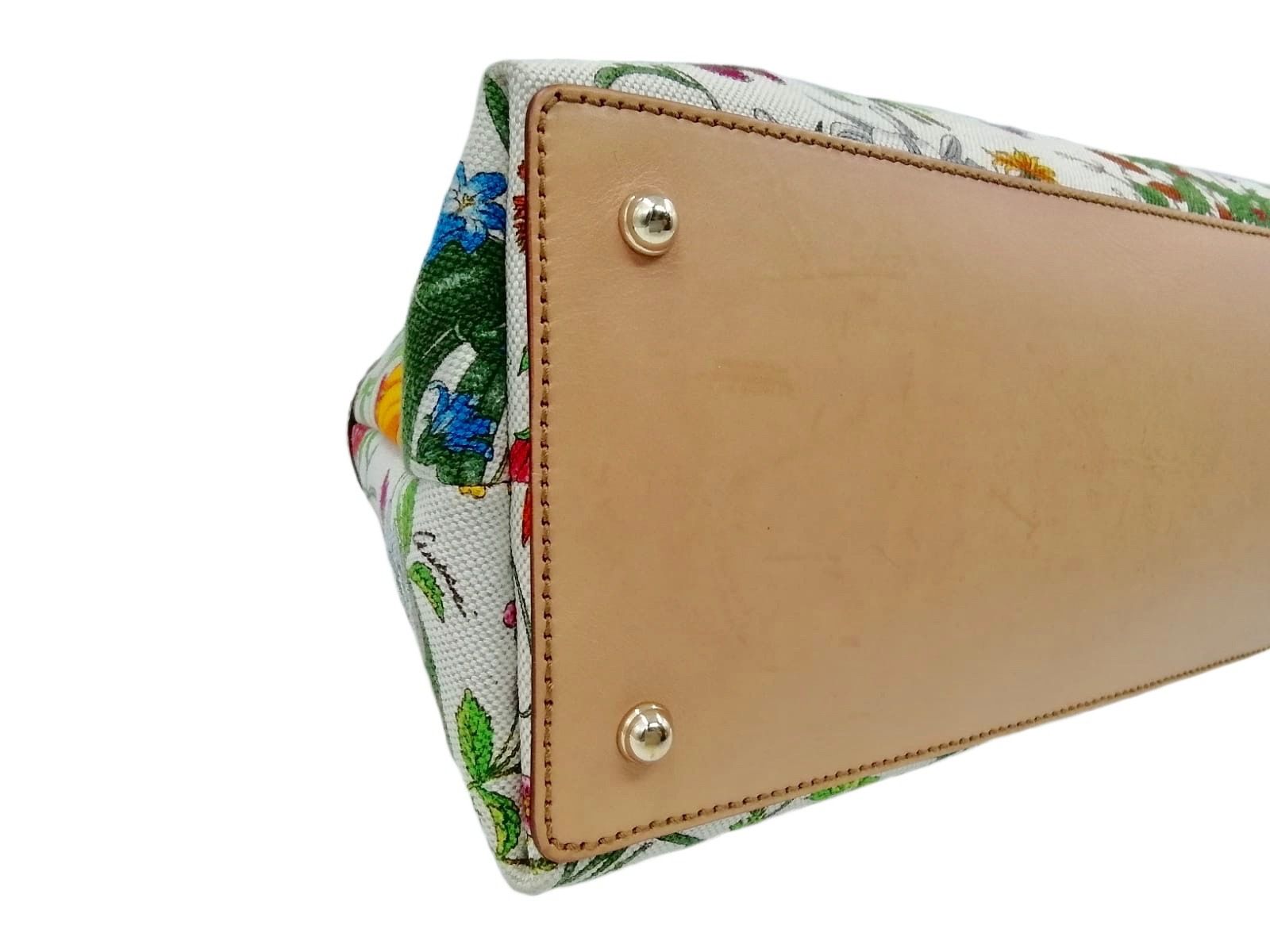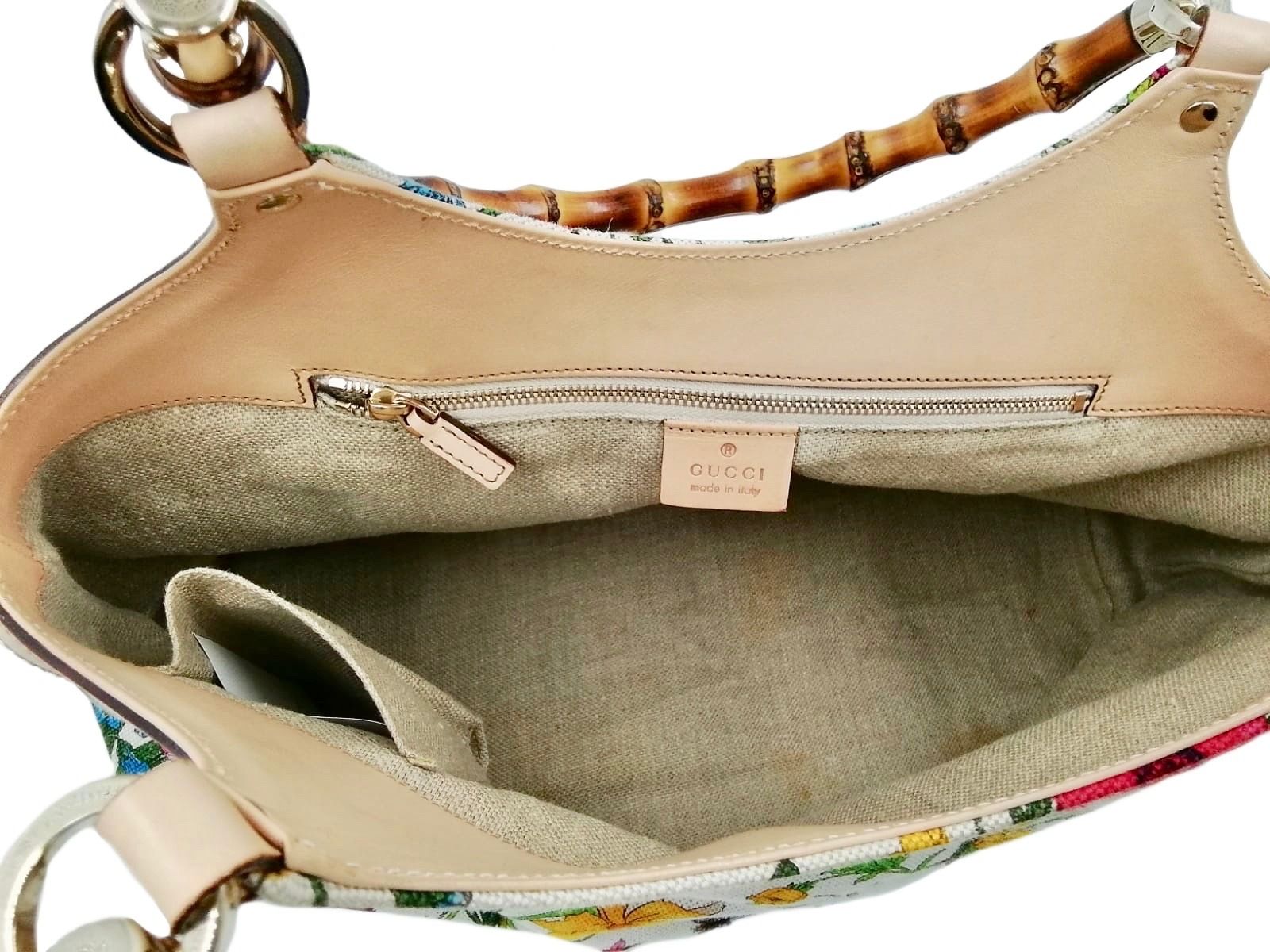 Borsa in tessuto, dettagli in pelle, manici in bamboo. Made in Italy 2010-2015. Ottime condizioni esterno, leggere macchie interno in tessuto ecrù, etichetta Gucci all'interno.