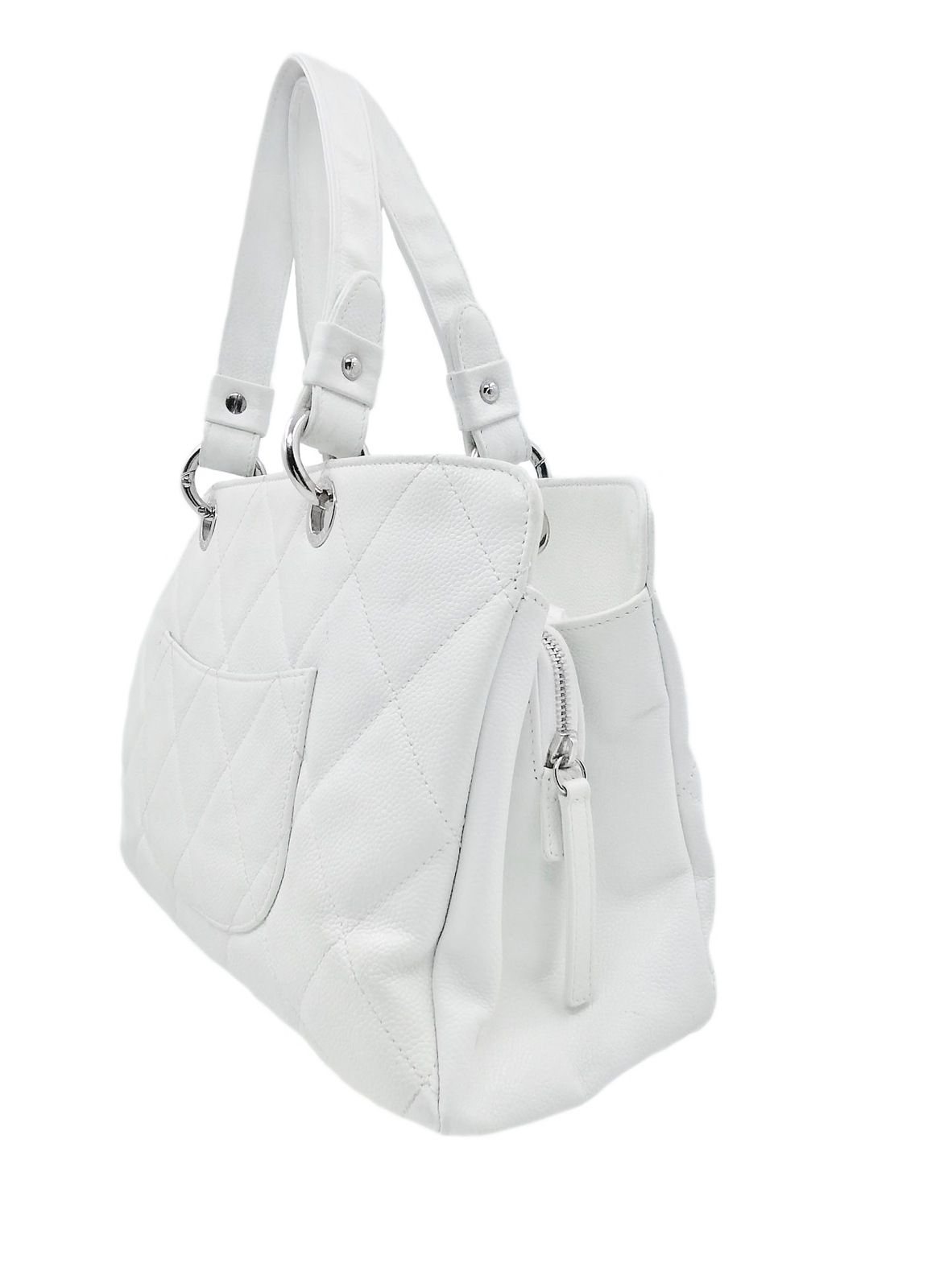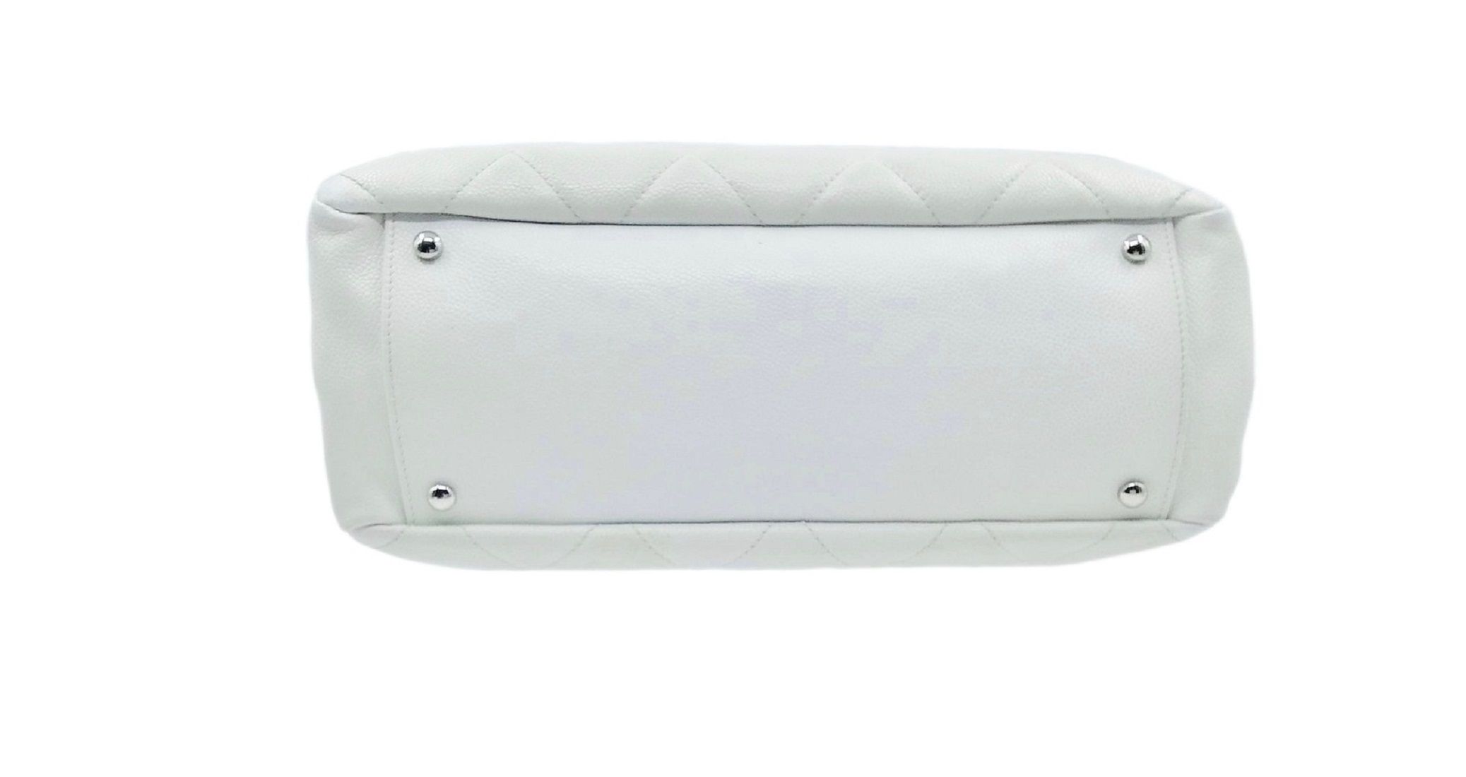 Borsa a mano in pelle caviar bianca. Caratteristica trapuntatura, logo CC sul fronte, manico in pelle bianca. Made in Italy 2008/2009. Buone condizioni. Etichetta Chanel Made in Italy all'interno, codice all'interno 12786525.