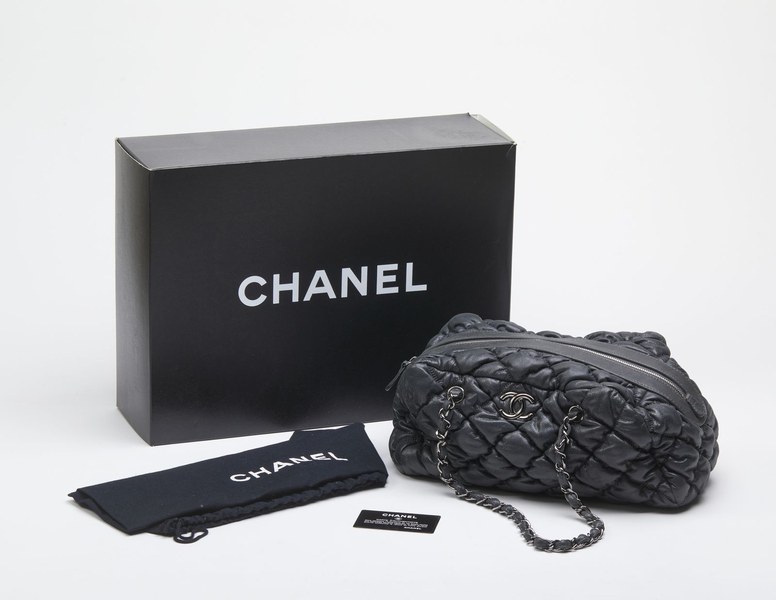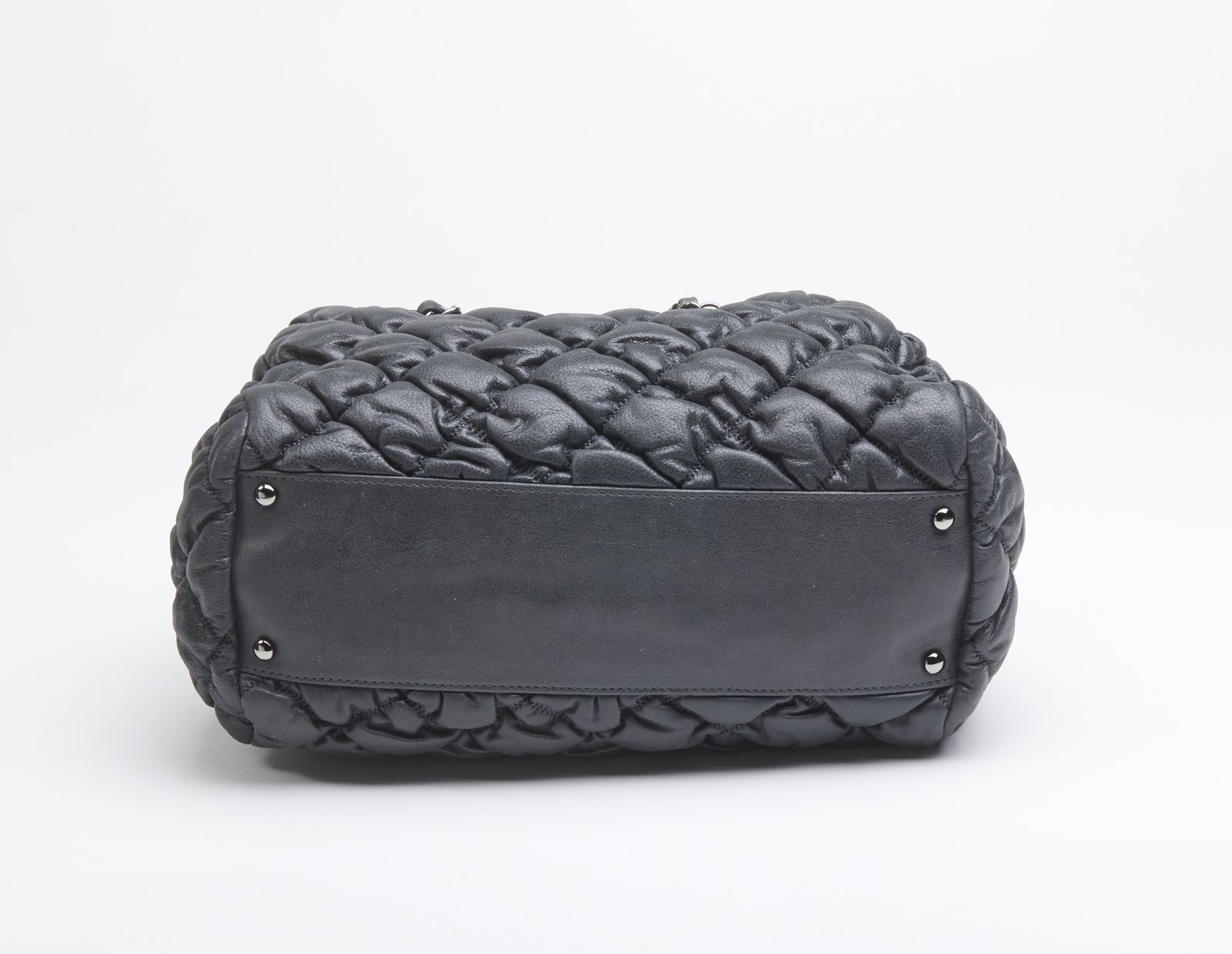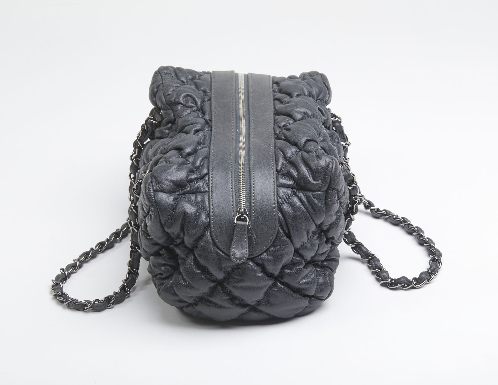 Borsa Chanel vintage, pre-fall 2009, direzione artistica Karl Lagerfeld, in pelle grigia scura/nera trapuntata e dettagli logo CC e catena in metallo argentato. Modello Paris-Moscou Bubble Quilted Bowler bag. Dustbag.