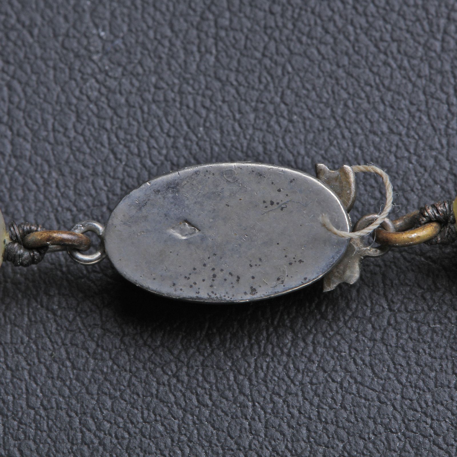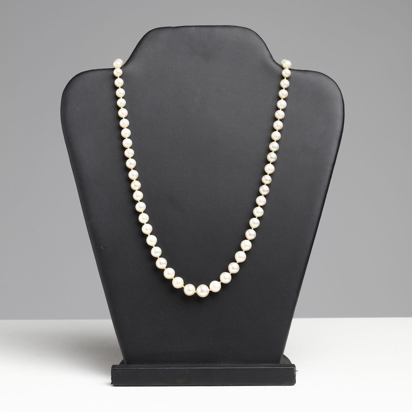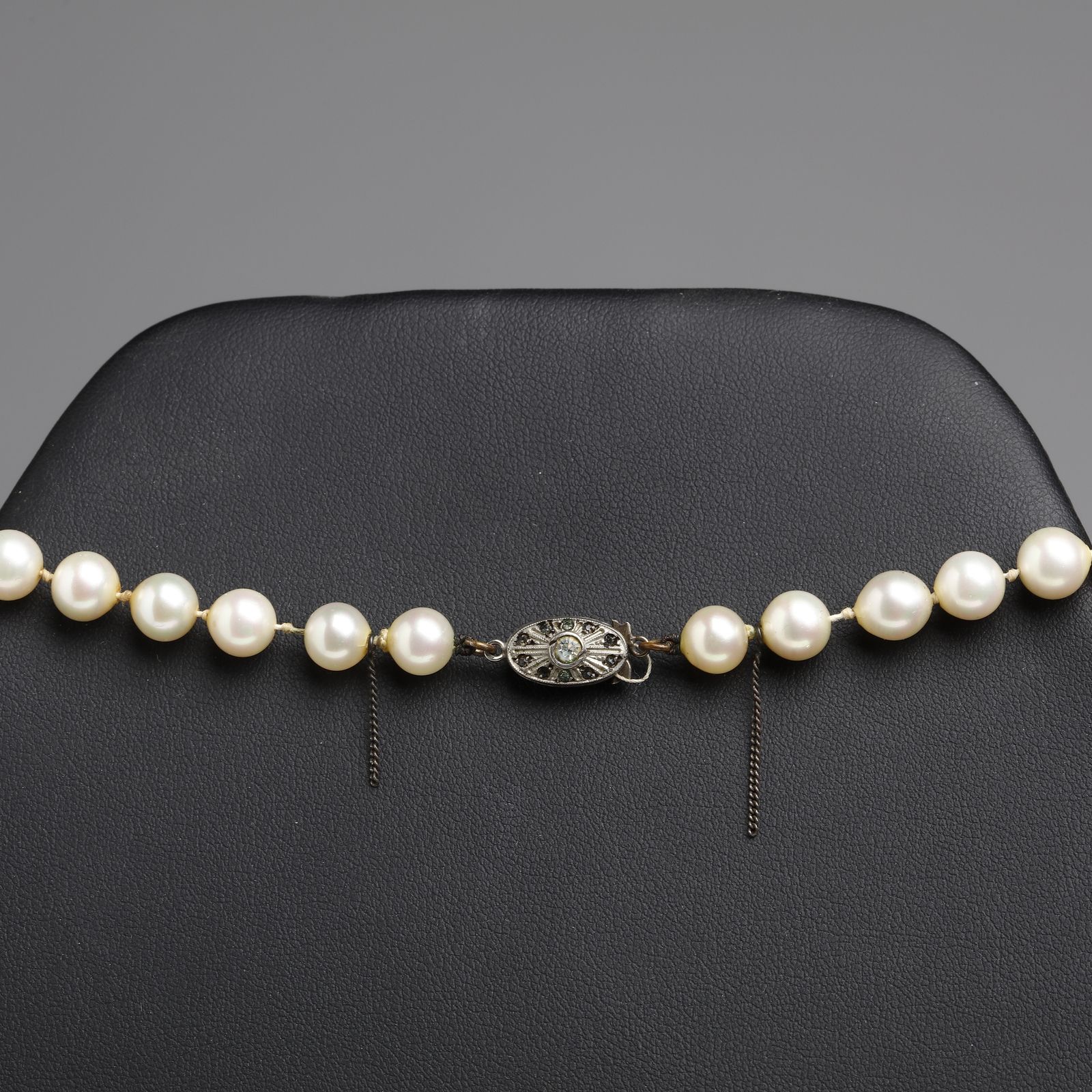 Elegante vezzo di perle sintetiche annodate, chiusura con strass.