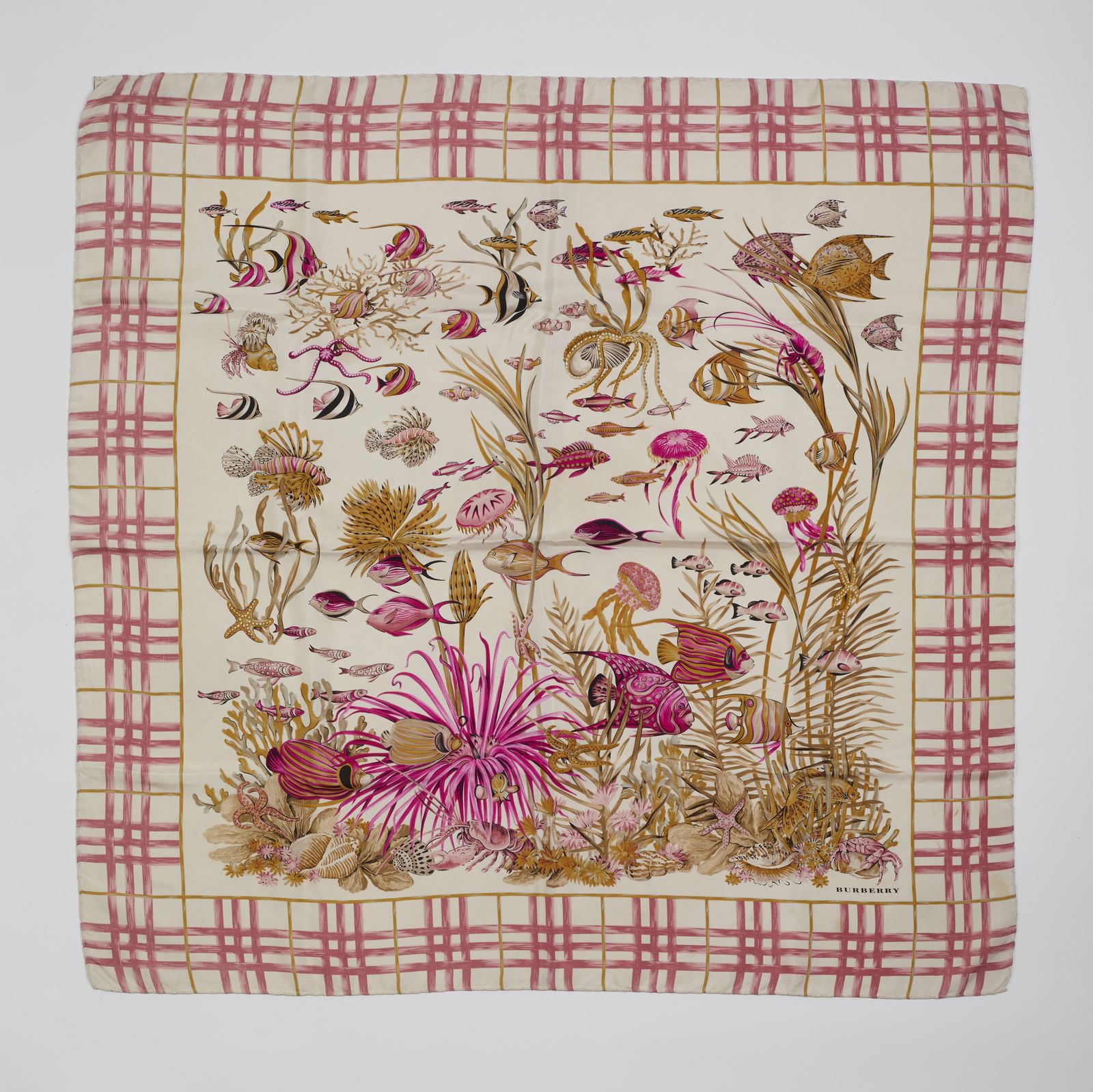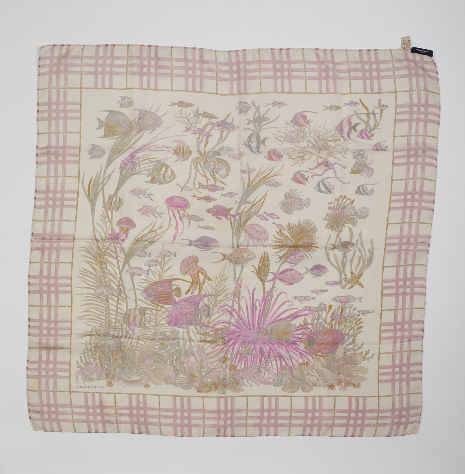 Foulard nei toni del rosa, stampa pesci.