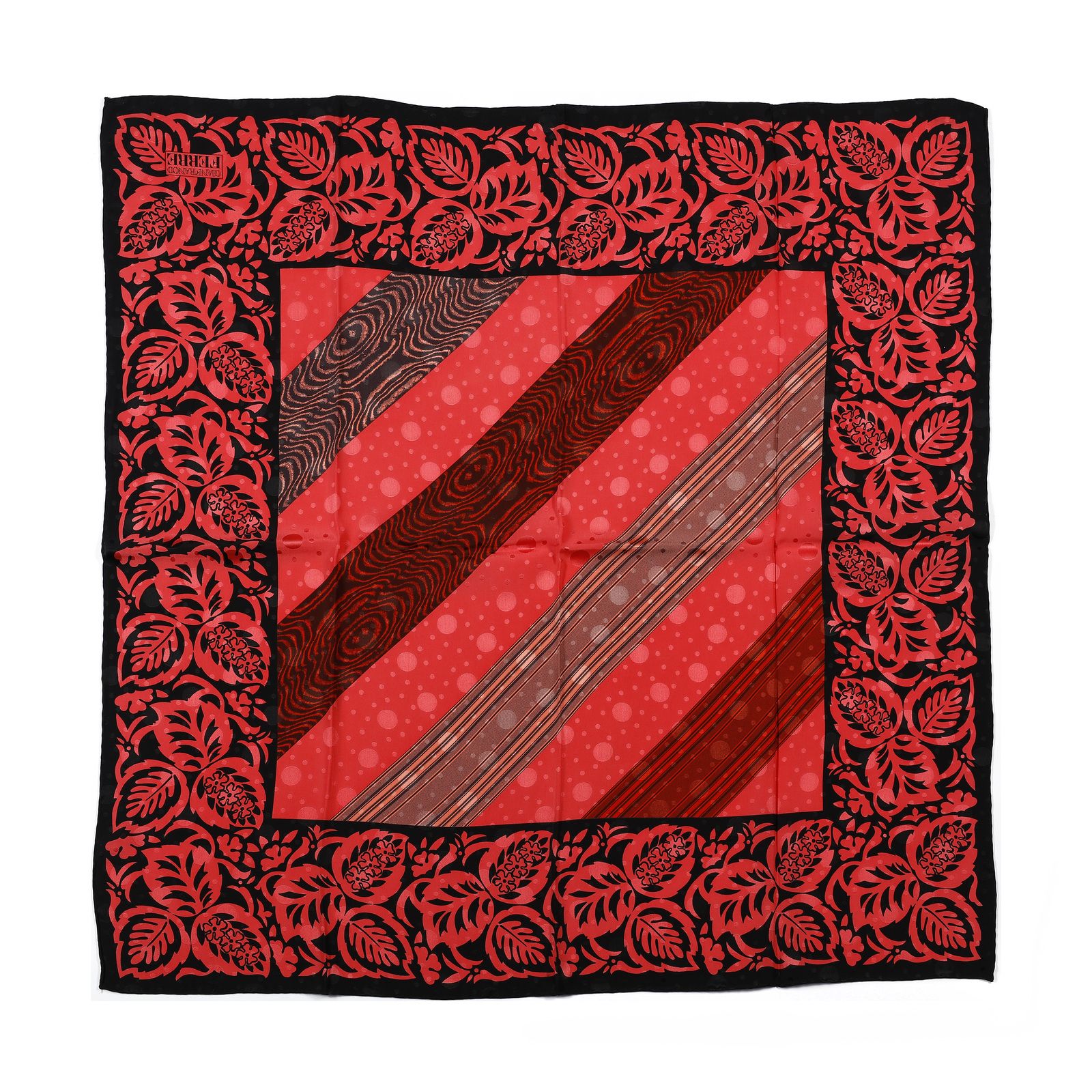 Decoro floreale nei toni del nero e del magenta. Firmato Gianfranco Ferré in un angolo.