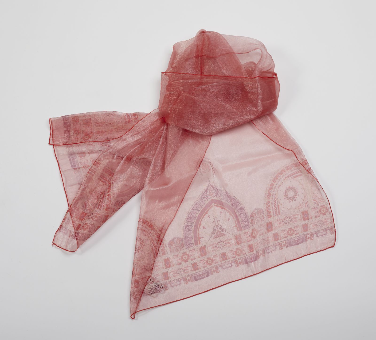 In faille trasparente con decoro di gusto moresco. Etichetta tessile ed etichetta Christian Dior presente.