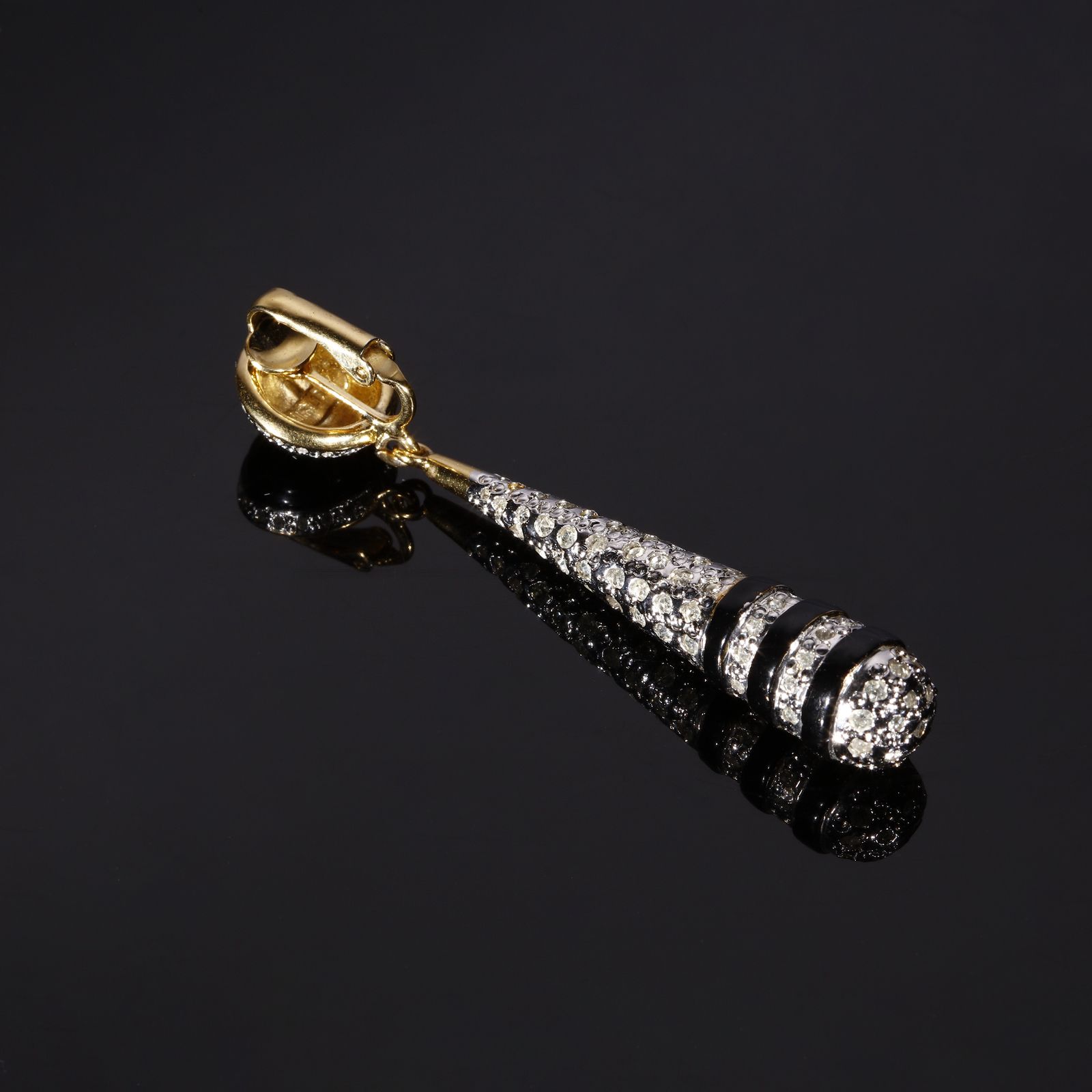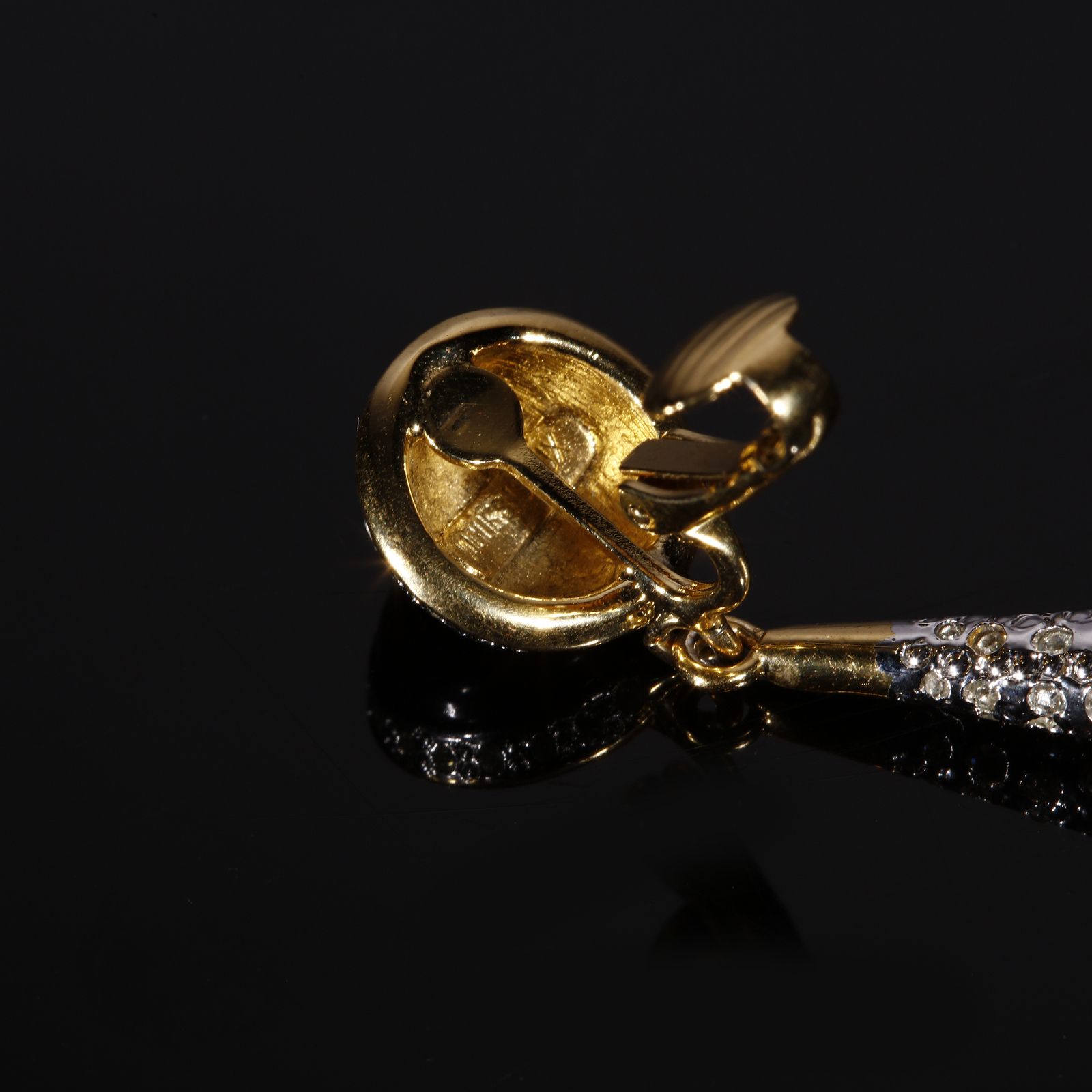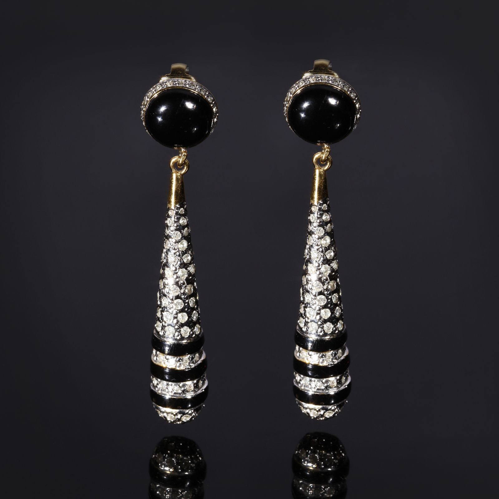 Orecchini pendenti neri e strass a goccia.