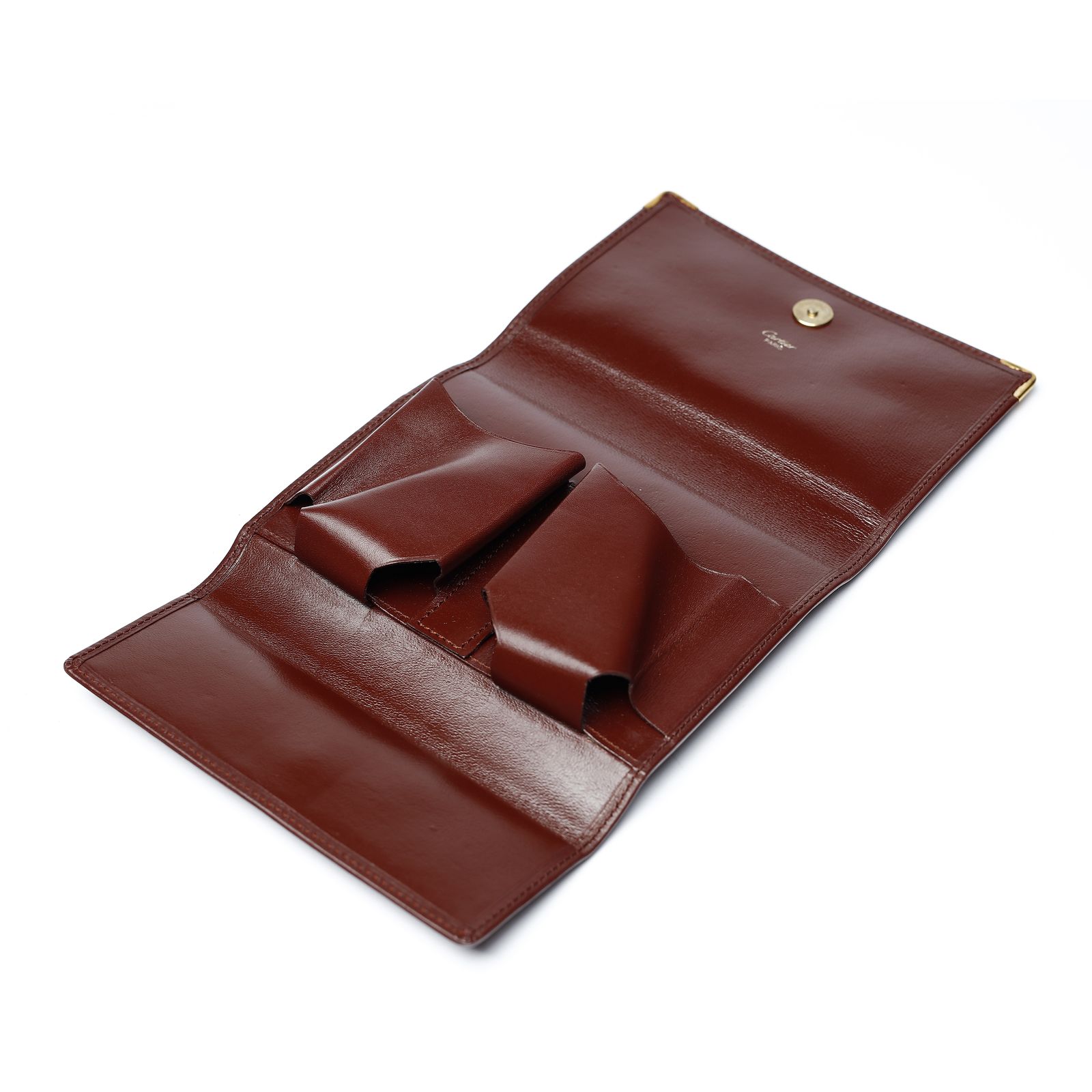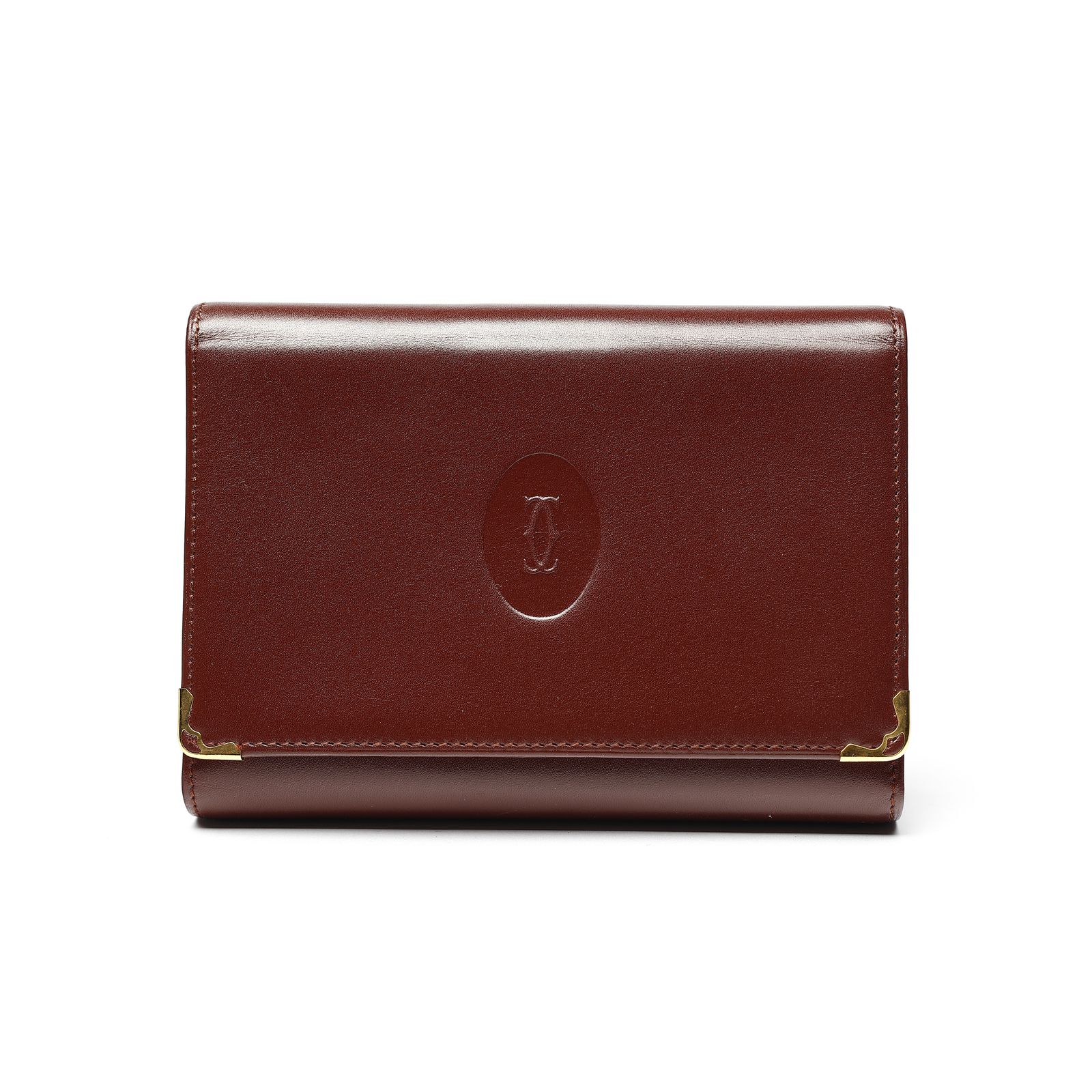 Porta carte in pelle con salva angoli in hardware dorato, logo frontale impresso, apertura a calamita. Internamente logo Cartier Paris. Due tasche porta carte. Certificato di autenticità presente.