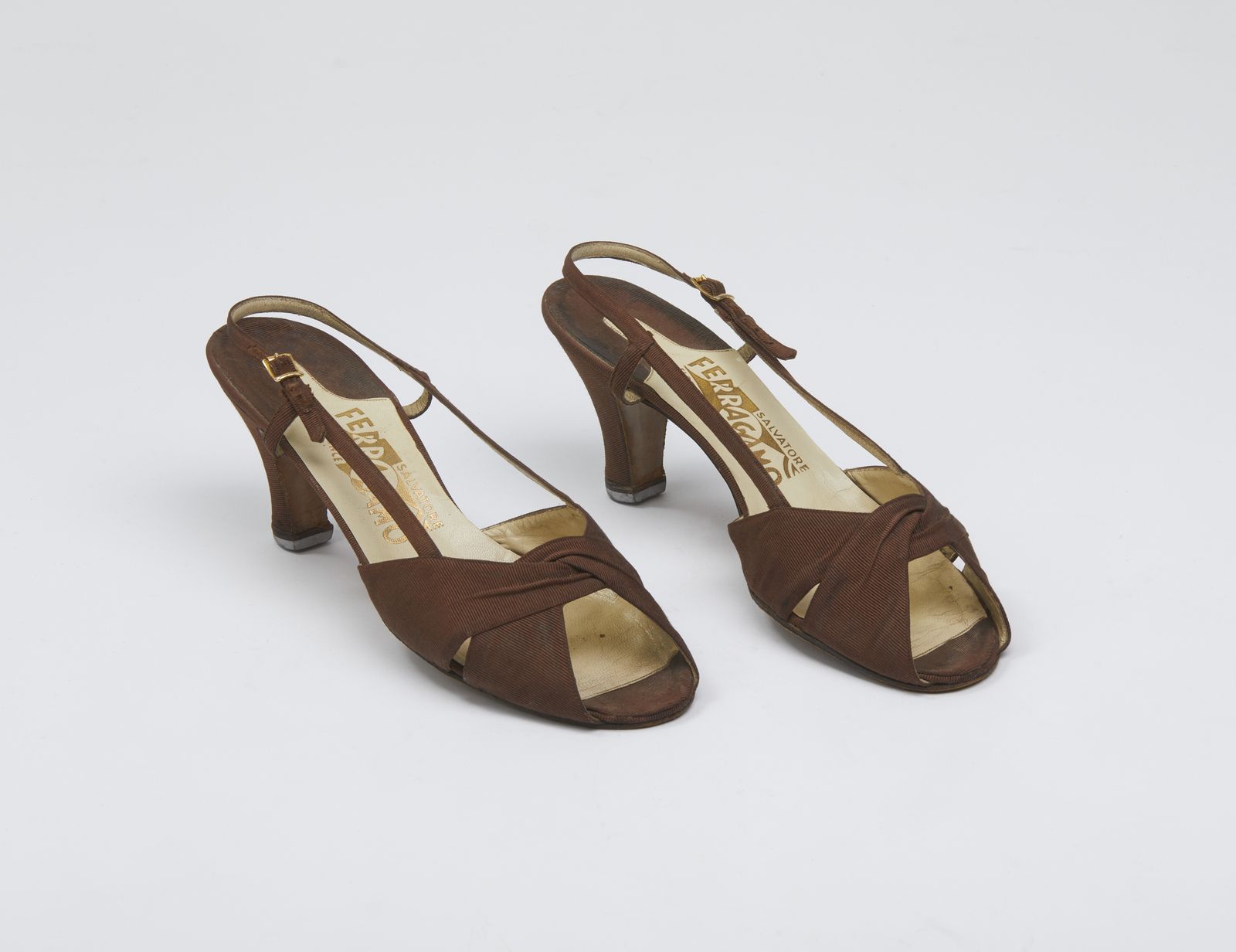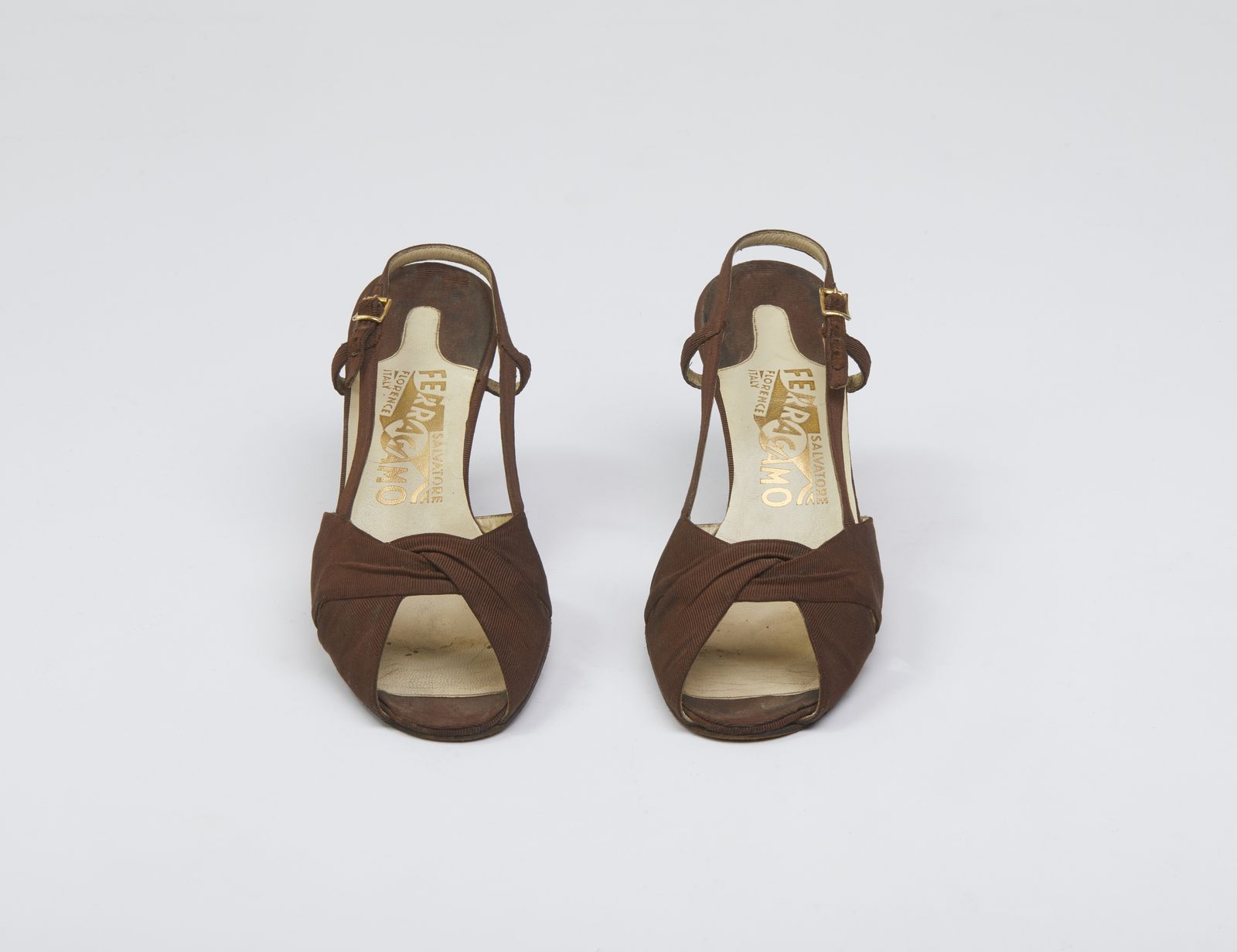 Sandalo testa di moro, numero 37. Fine anni 50'. Tacco cm 6.5, in faille taffetà rigato di seta. Condizioni eccellenti, valore museale, da archivio.