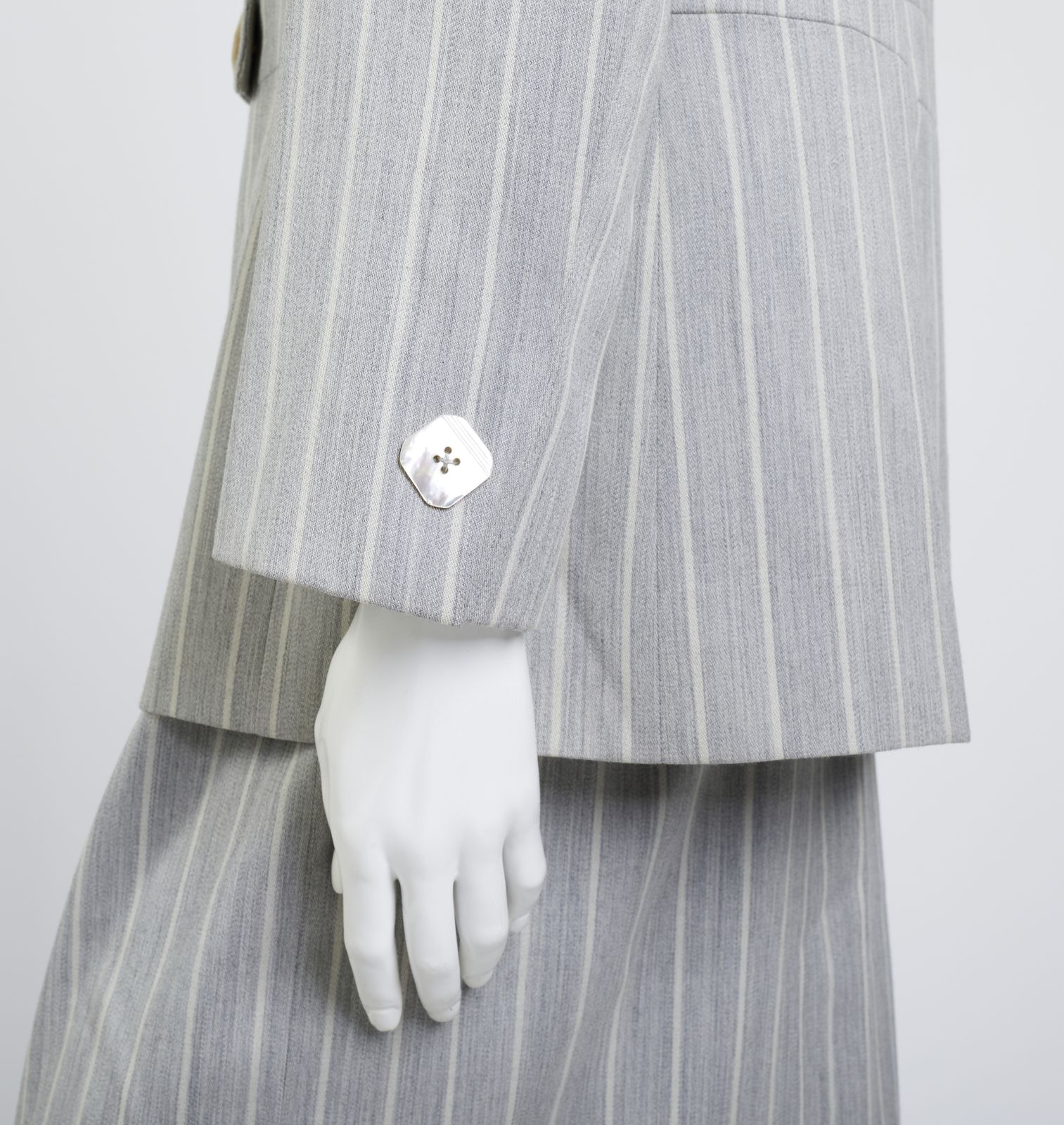 Tailleur in tessuto Valentino, etichetta presente, lunghezza gonna 63 cm, vita 35 cm, langhezza spalla della giacca 39 cm, lunghezza della giacca 69 cm.