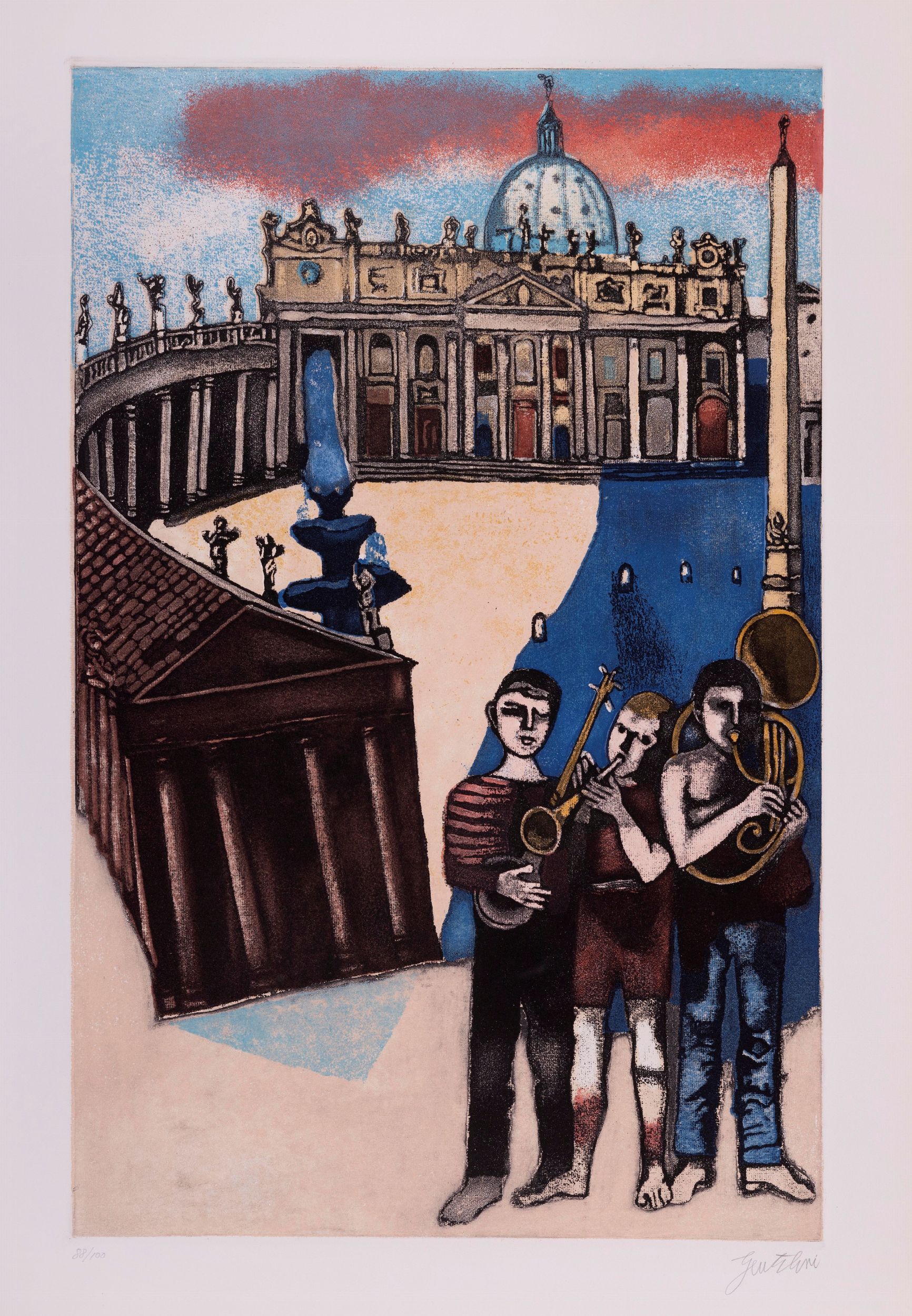 litografia a colori, es. 88/100, cm 70 x 50 (misure del foglio), (sc)