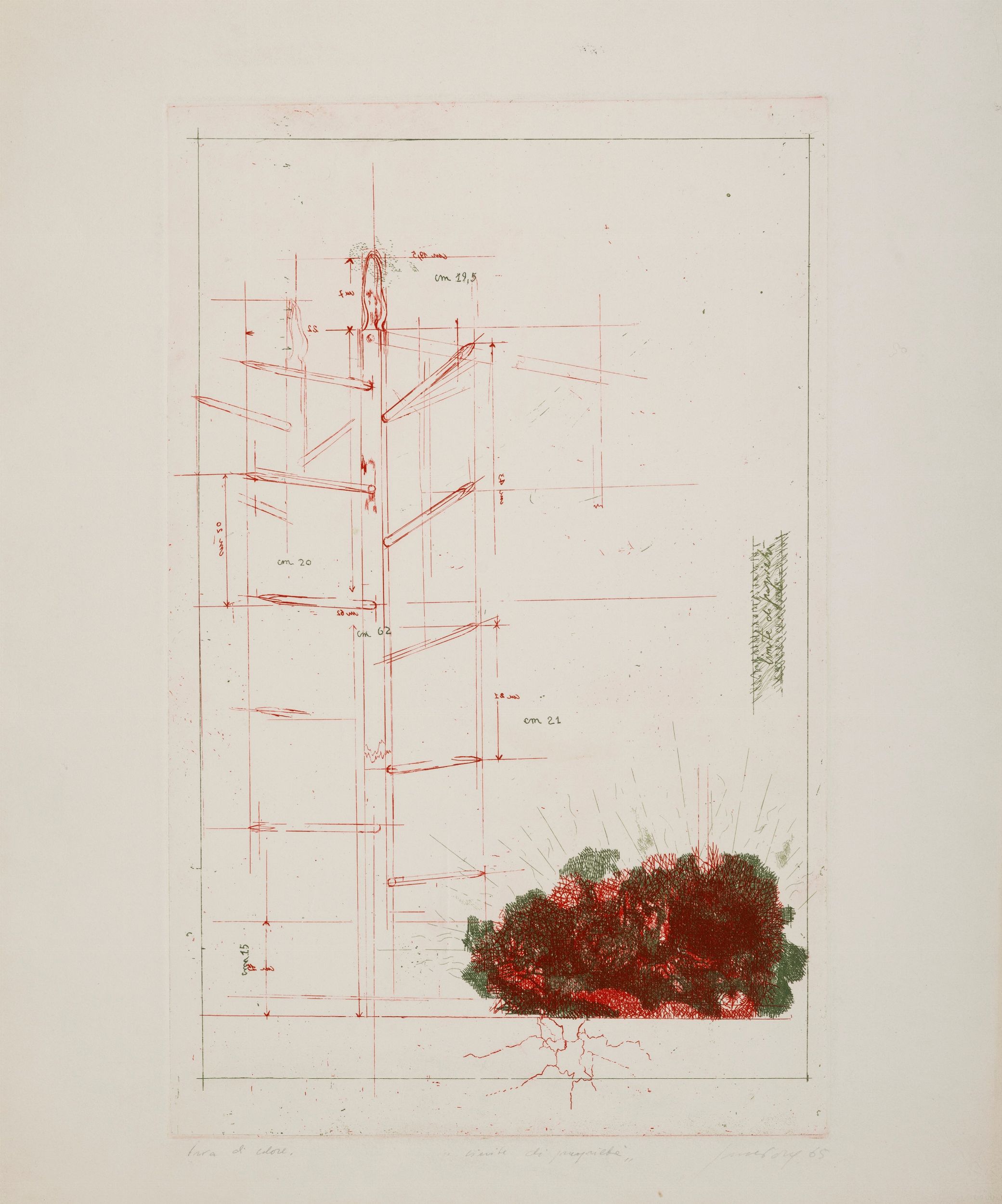 acquaforte acquatinta a colori, es. prova di colore, cm 49 x 31,5 (cm 59 x 50 misure del foglio), (sc)