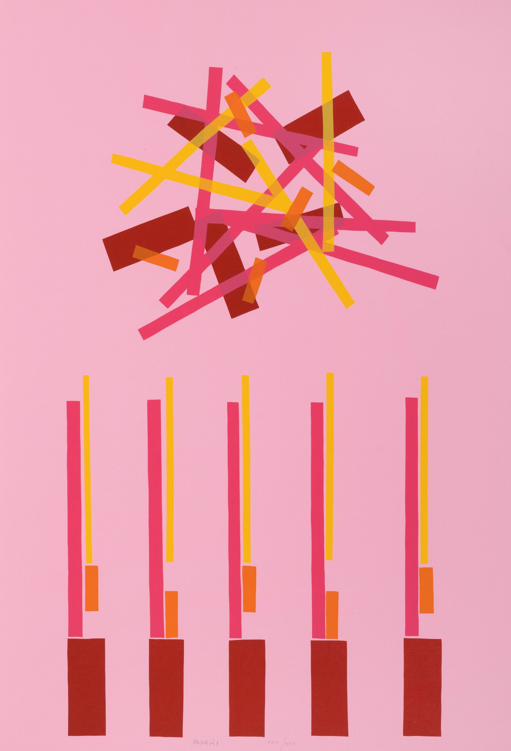 cartella contenente 4 serigrafie a colori, ess. XXIV/XXX, cm 69 x 49 (misure di ciascun foglio), (sc) a) Un tramonto arancione b) Un nudo umano c) Un fiore d) La natura ispira l'arte Tutte recanti firma a matita Stampatore Lucini, Milano Editore SNIA BPD, Milano