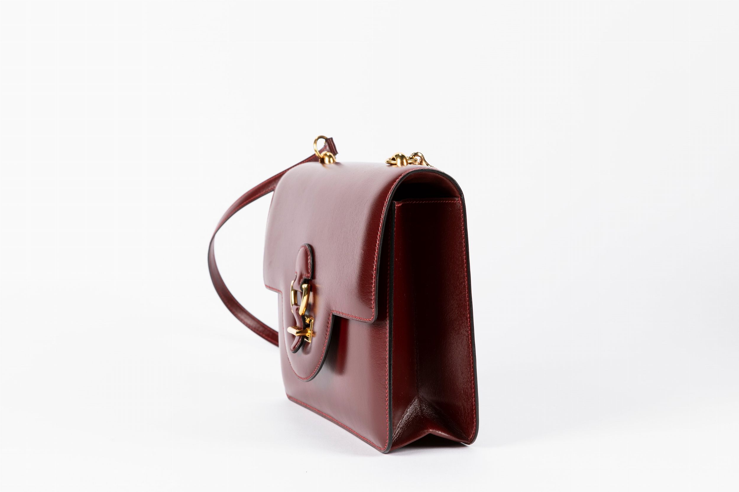 1981 in pelle box color bordeaux, con tracolla, dettagli in metallo dorato, cm 24