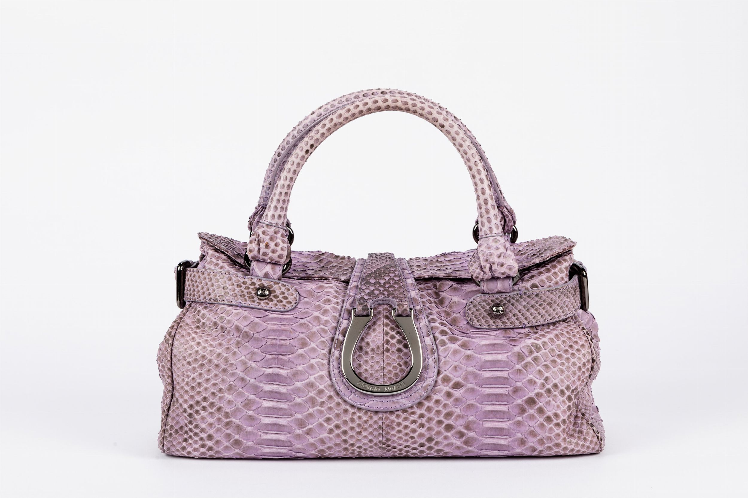 in pitone, doppi manici, dettagli in metallo, certificato CITES annesso, cm 34, con sacchetto (lievi difetti)
