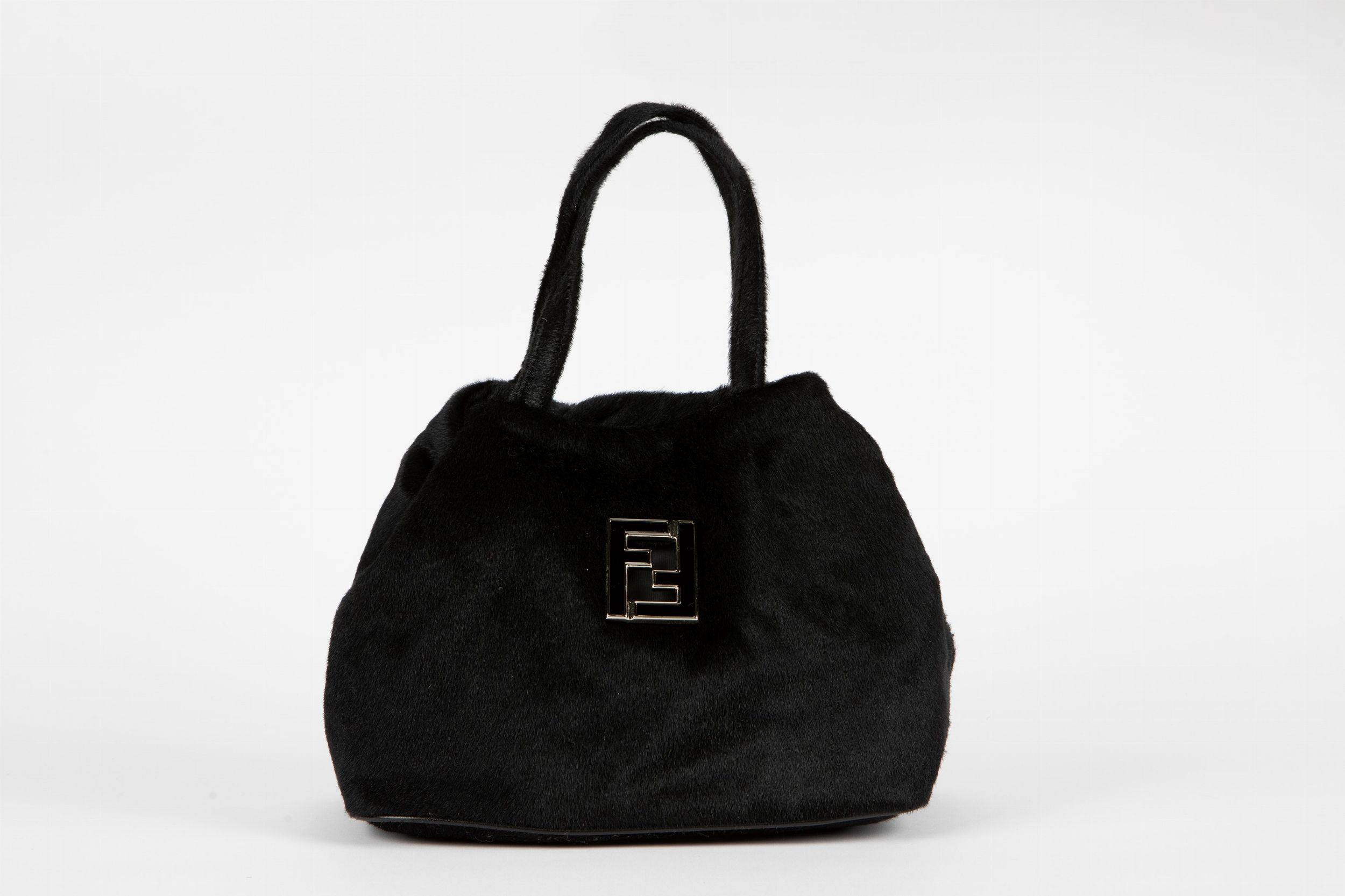 in pelle di cavallino color nero, doppi manici, dettaglio frontale logato in metallo e smalto, cm 25