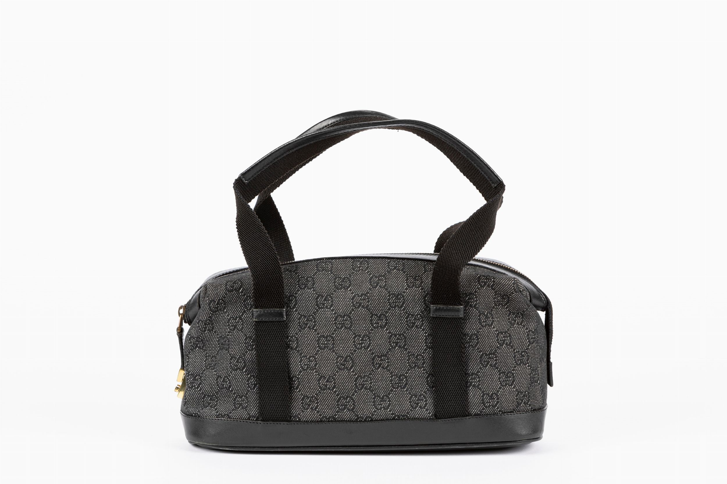 in tessuto logato color nero, chiusura a cerniera, profili in pelle, cm 30, con sacchetto (lievi difetti)