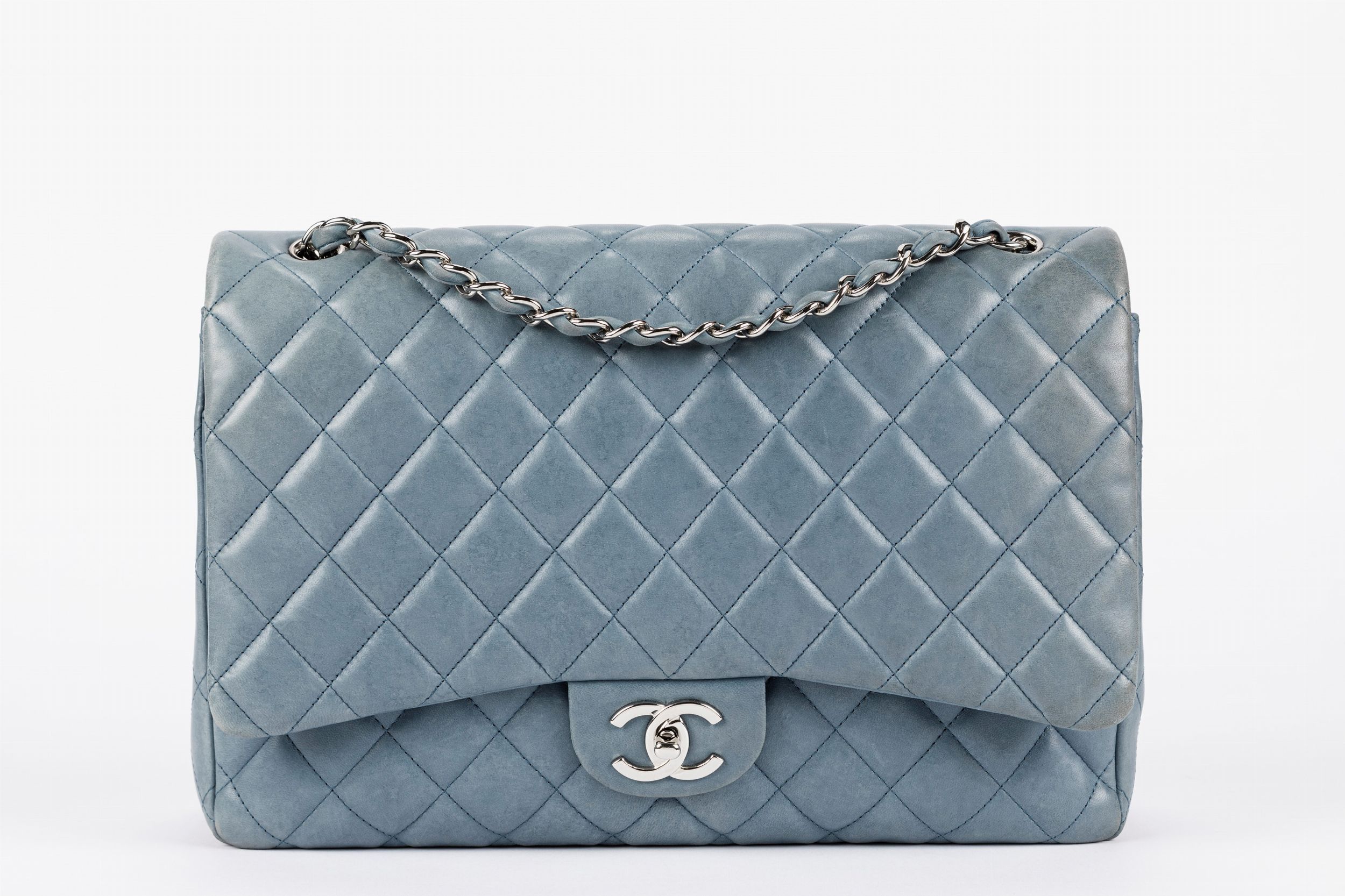 2012 in pelle matelassé color carta da zucchero, con tracolla a catena in metallo, cm 33, con sacchetto (difetti)