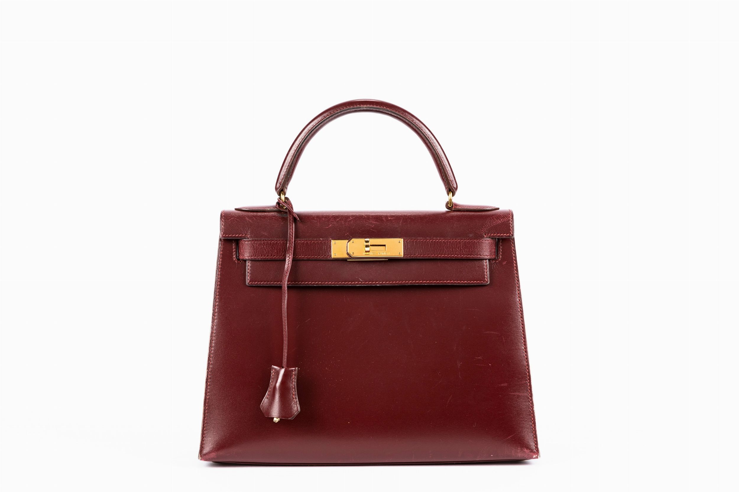 1991 in pelle box color bordeaux, dettagli in metallo dorato (difetti)