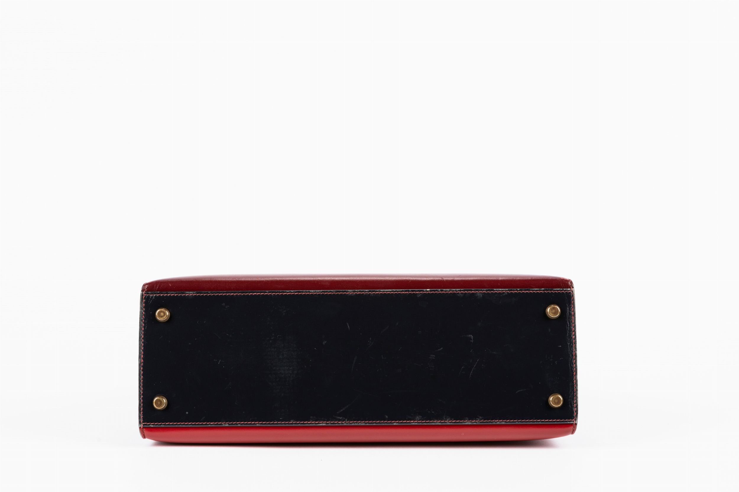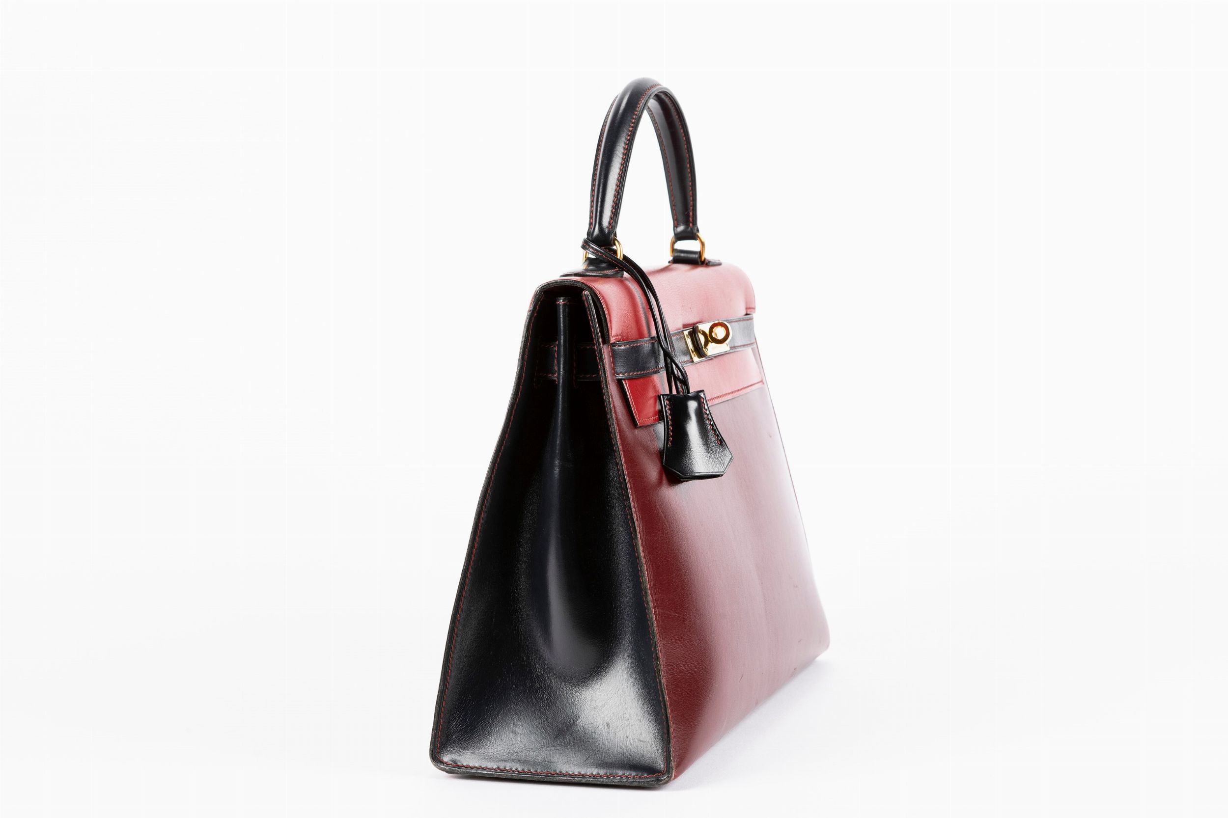 1988 in pelle box tricolore (bordeaux, rouge e blu), dettagli in metallo dorato con tracolla, con sacchetto (lievissimi difetti)