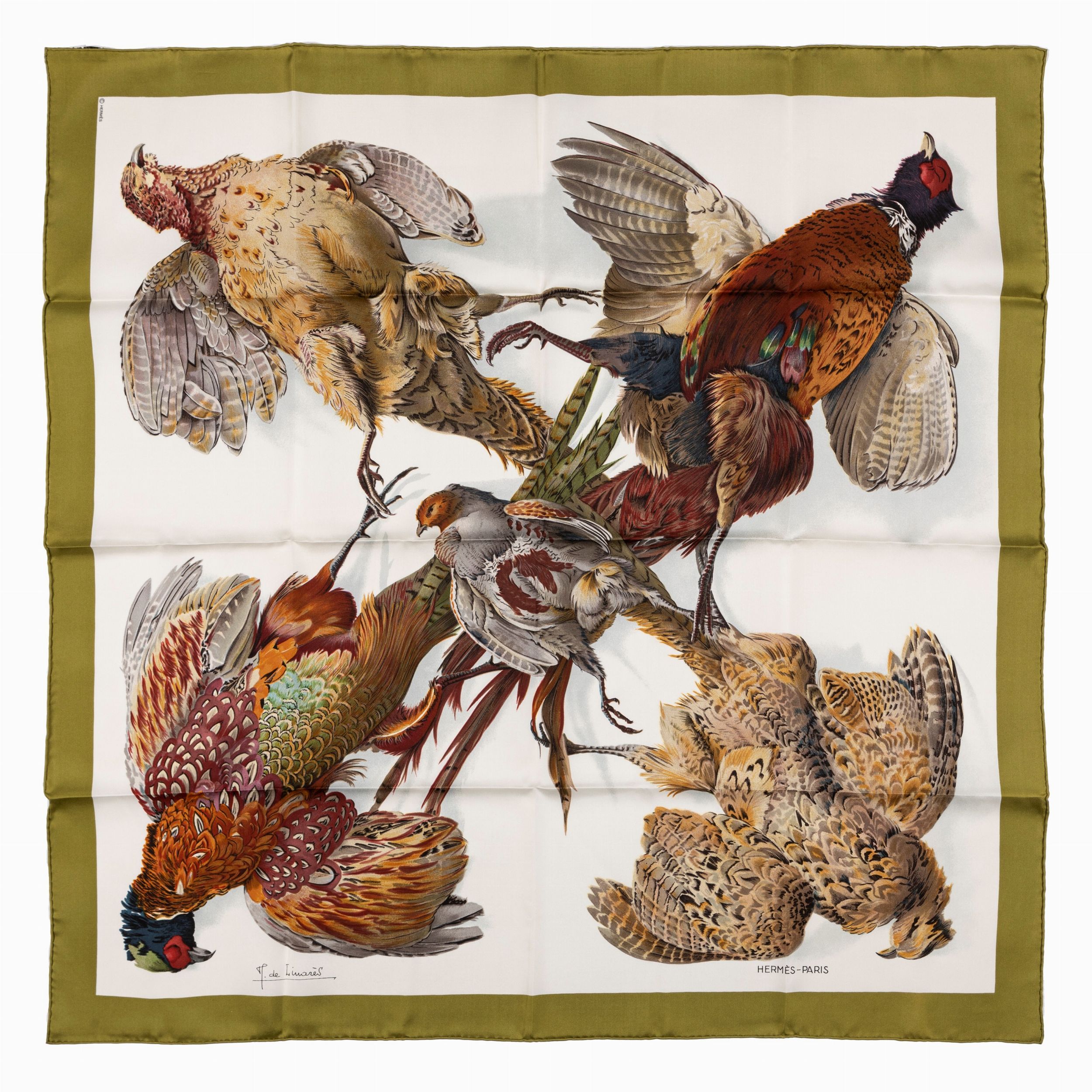 1980 in seta, su fondo color panna, bordo color verde oliva, Henri de Linares, con scatola