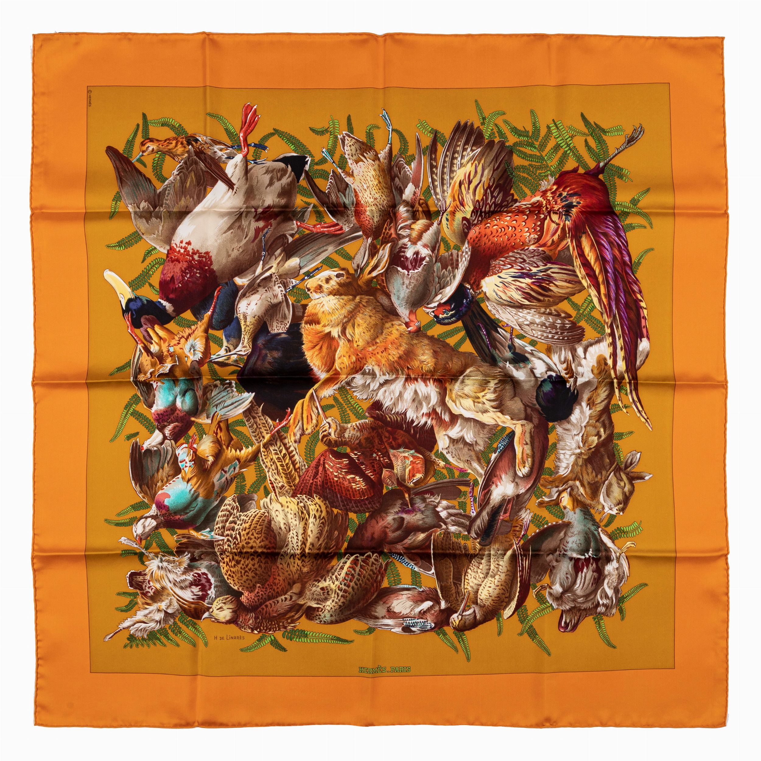 1991 in seta, su fondo color senape, bordo color arancio, Henri de Linares, con scatola